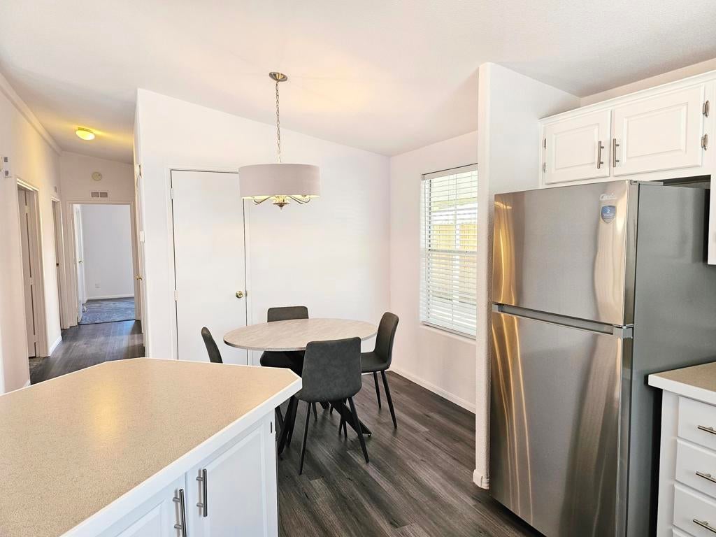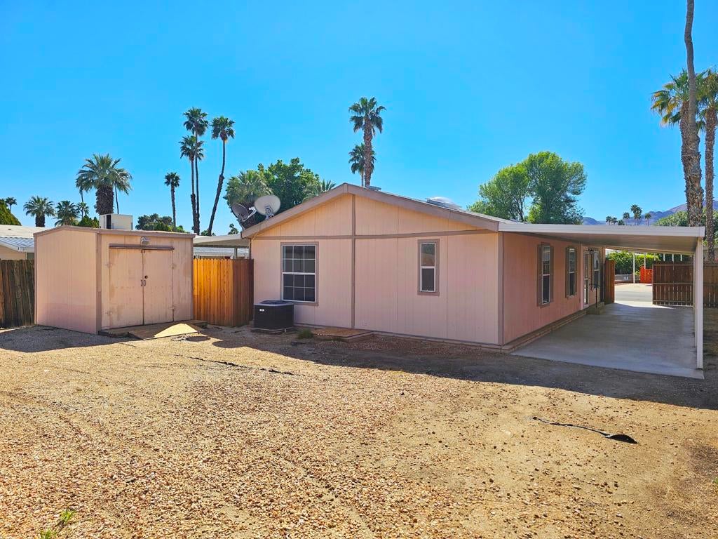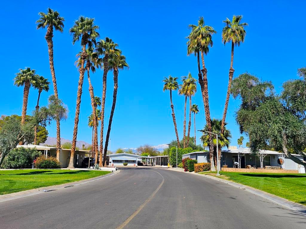 Escape to your own private desert retreat! This beautifully maintained 3-bedroom, 2-bath home (built in 2000) offers the perfect balance of comfort, style, and resort-style living. Light and bright throughout, the open floor plan features vaulted ceilings, smooth drywall interiors, and low-maintenance laminate flooring, creating an inviting, move-in-ready space ideal for full-time living or a sunny seasonal escape.The versatile third bedroom is perfect as a den, guest room, or home office. Both bathrooms are filled with natural light from skylights, with the primary bath offering a walk-in shower for added convenience. Additional highlights include indoor laundry, ceiling fans throughout, and a covered carport accommodating up to three vehicles.Step outside to your private, fully fenced backyard, where stunning mountain views set the scene for morning coffee or evening relaxation. A large storage shed provides ample space for golf clubs, bikes, or hobbies.Located in a vibrant 55+ golf and tennis community, residents enjoy an impressive array of amenities including an 18-hole executive golf course, putting green, five pools, four spas, tennis courts, fitness center, sauna, and an on-site restaurant. All of this is just minutes from shopping, dining, and entertainment.Monthly space rent: $1,450