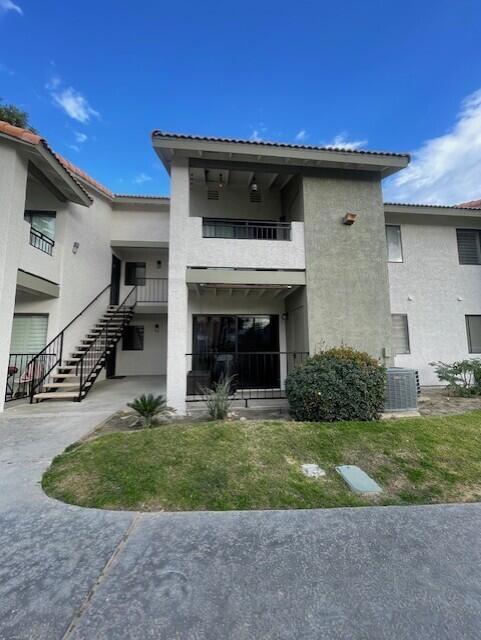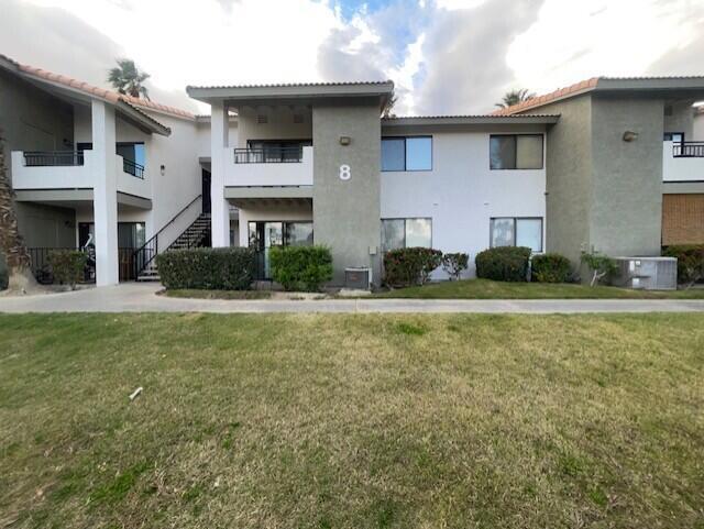 Location, Location, location. Directly across from the pool/spa... Close to schools, shopping and 10-E/W. Nice 1 bedroom condo with granite counter tops in kitchen, nice cabinetry. Carpet in bedroom and tile in rest of condo. Washer/dryer located in storage closed off of patio that has bbq/storage box. 2 parking spaces 1 covered/1 uncovered. Backs up to Adams street. Great condo, can use as a rental longterm.