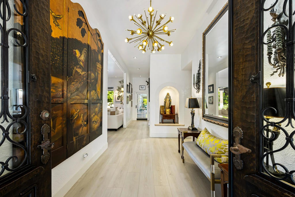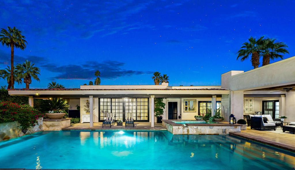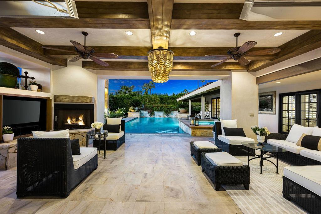 Set on one of only twelve expanded parcels within the sought-after enclave of South Palm Desert, this Spanish Ranch Estate offers a rare blend of privacy, comfort, and timeless appeal. Spanning approximately 0.77 acres, the beautifully landscaped grounds showcase mature trees, lush greenery, a custom putting and chipping course, and enchanting English gardens that define the soul of the property. Beyond the private gates, a sense of calm immediately sets in, creating a true retreat from the outside world. The residence is warm and inviting, featuring new wood flooring throughout and a character that reflects decades of thoughtful ownership by the same family for over forty years. Designed for seamless indoor-outdoor living, the main living spaces open through expansive glass sliders to a covered veranda complete with built-in heaters, a fireplace, and media cabinet--ideal for entertaining or relaxed evenings year-round. The kitchen serves as the heart of the home, offering generous island seating, a pop-up television behind the sink, and an adjoining casual sitting area perfect for everyday gatherings. The formal dining room creates a welcoming yet elevated space for both intimate dinners and larger celebrations The primary suite is a private retreat with serene views of the pool and grounds, two dedicated offices, and a cozy fireplace. The newly renovated, spa-inspired bath features a soaking tub, dual walk-in closets, and dual water closets. Additional highlights include the custom-built office with private patio access, two guest suites, a media room, and a powder room. The guest house offers exceptional flexibility with two bedrooms, two bathrooms, a living room, dining area, kitchenette, and its own expansive private patio--ideal for extended stays or visiting family and friends. Deep Canyon Ranch is a place where comfort, privacy, and everyday luxury come together effortlessly. We look forward to welcoming you to this special estate.