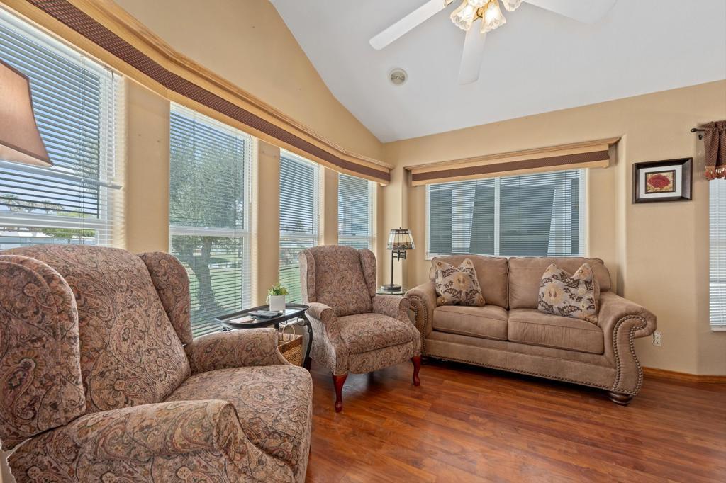 Welcome to your perfect desert getaway in the heart of the Rancho Casa Blanca 55+ Resort Community! This 2001 park model is located in a fantastic spot on the 14th green, offering AMAZING views of the golf course, the lake and those gorgeous northern mountains from your ground-level patio that takes full advantage of the extra lot space! Ideal for relaxing by the fire pit, entertaining with a card game, or soaking up the sunshine!Inside, this home features one of the more favorable layouts, with plenty of living, dining, and kitchen space... all in a bright and welcoming setting. The laminate wood floors add warmth and style, plus the home comes fully furnished and is move-in ready! Outside, you'll find a large shed for additional storage, perfect for golf gear, bikes, or seasonal extras.RCB comes alive during season with FUN-filled activities, social events, and a strong sense of community. As an owner, you'll enjoy FREE GOLF, multiple pools and spas, two clubhouses, satellite buildings with laundry, and lush, landscaped grounds across 80 gated acres.Whether you're looking for a winter retreat or a seasonal rental opportunity (Yes, seasonal rentals do fantastic in this community!), this home checks all the boxes! Did I mention- you own the land! Schedule your viewing today!