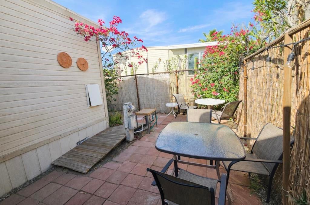 Located in The Sands RV & Golf Resort, this home offers a comfortable layout with good natural light and functional use of space. The interior includes generous built-in storage and an extended living area that has been converted into a secondary bedroom, providing added flexibility for guests, office space, or additional sleeping quarters.The property features front and rear access with sliding doors, creating an easy indoor-outdoor flow. A patio expands the usable living space and offers a private setting for everyday enjoyment.A separate shed adds valuable utility and includes a washer and dryer, with enough space to park a golf cart or use as additional storage. The home is being sold fully furnished with appliances, including washer and dryer, making it a convenient option for full-time or seasonal living.Residents enjoy access to a wide range of resort-style amenities including golf, swimming pools, pickleball courts, a hibachi court, three dog parks, a pond, gym, clubhouse, spa, and social activities, all within a gated, well-established community. Conveniently located minutes from Palm Springs, Palm Springs International Airport, and just a short drive to the I-10 freeway, offering easy access throughout the Coachella Valley.