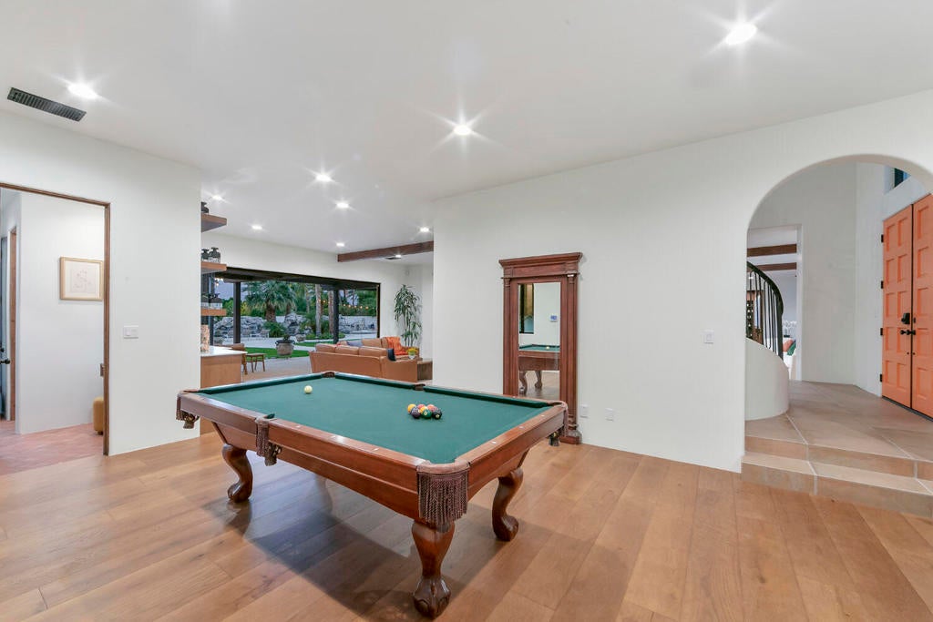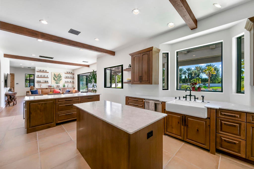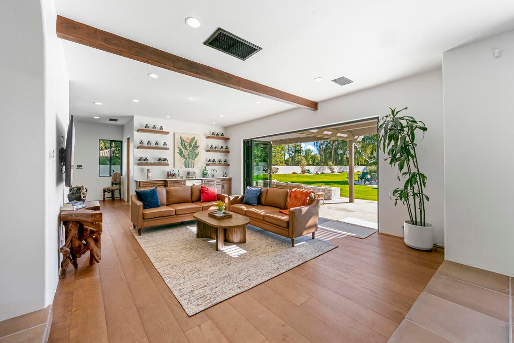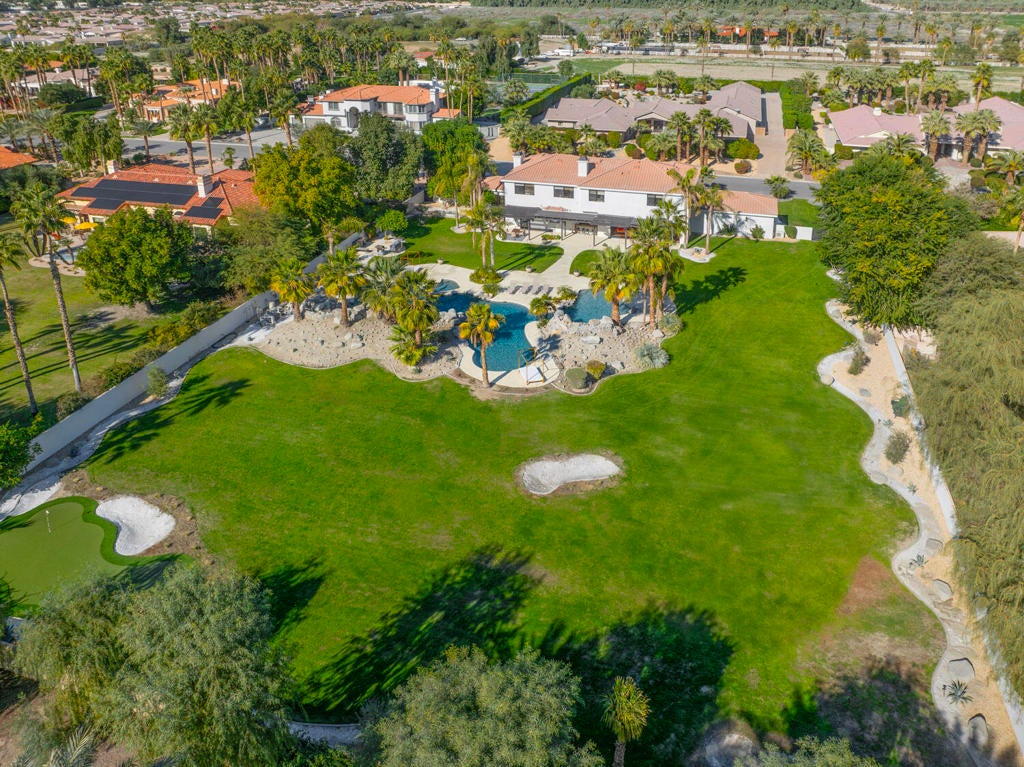 Located behind the gates of The Estates of La Quinta, 81935 Mountain View Lane presents a rare opportunity to own a true resort-caliber estate in one of the desert's most private and sought-after enclaves. Perfectly positioned near the world-class Desert International Horse Park, the Jacqueline Cochran Regional Airport, PGA West, and the exclusive Madison Club, this property offers unmatched access to elite lifestyle amenities while maintaining exceptional privacy within La Quinta. The estate is set on an expansive 1.25 acres, providing exceptional space, privacy, and the scale necessary to support its resort-style amenities and grounds. Designed for both grand-scale entertaining and everyday luxury, the estate showcases one of the Coachella Valley's largest resort-style pools, enhanced by dramatic cascading water features and expansive lounging areas. A private par-3 golf hole with crushed white Augusta-style sand bunkers creates a one-of-a-kind backyard experience rarely found in residential estates, delivering a true country club atmosphere at home.The residence has been thoughtfully remodeled with high-end finishes and architectural details throughout its six bedrooms and six-and-a-half bathrooms. Interiors feature 10-inch wide-plank European oak wood flooring, imported Spanish tile, and Carrera white marble throughout. Custom tile bathrooms, two indoor Jacuzzi tubs, and solid 8-foot alder doors elevate the sense of craftsmanship and quality at every turn. The gourmet kitchen and entertaining spaces are anchored by Wolf and Sub-Zero appliances, three wine refrigerators, a full wet bar, and a dramatic 17-foot Fleetwood-style bi-fold door that seamlessly connects indoor and outdoor living. A six-foot pass-through window further enhances the flow for hosting, while custom cast-iron A/C vents and a whole-house central vacuum system reflect the home's attention to refined detail and modern convenience. 81935 Mountain View Lane is a rare offering that blends privacy, proximity, and resort-level amenities into a single exceptional estate--an ideal retreat for those seeking the highest level of luxury living in La Quinta.