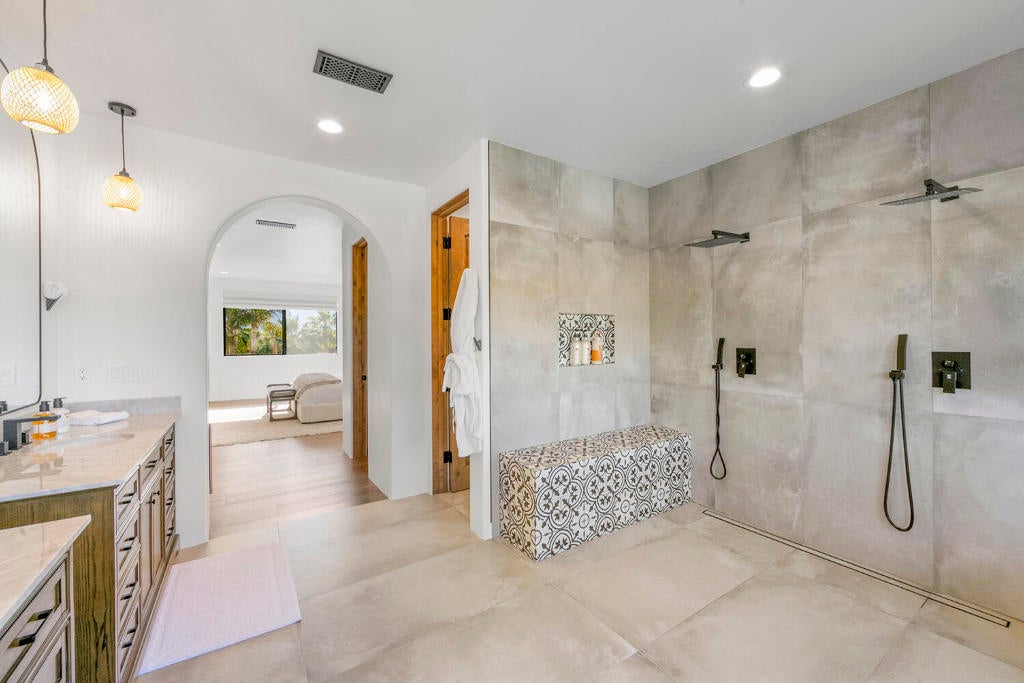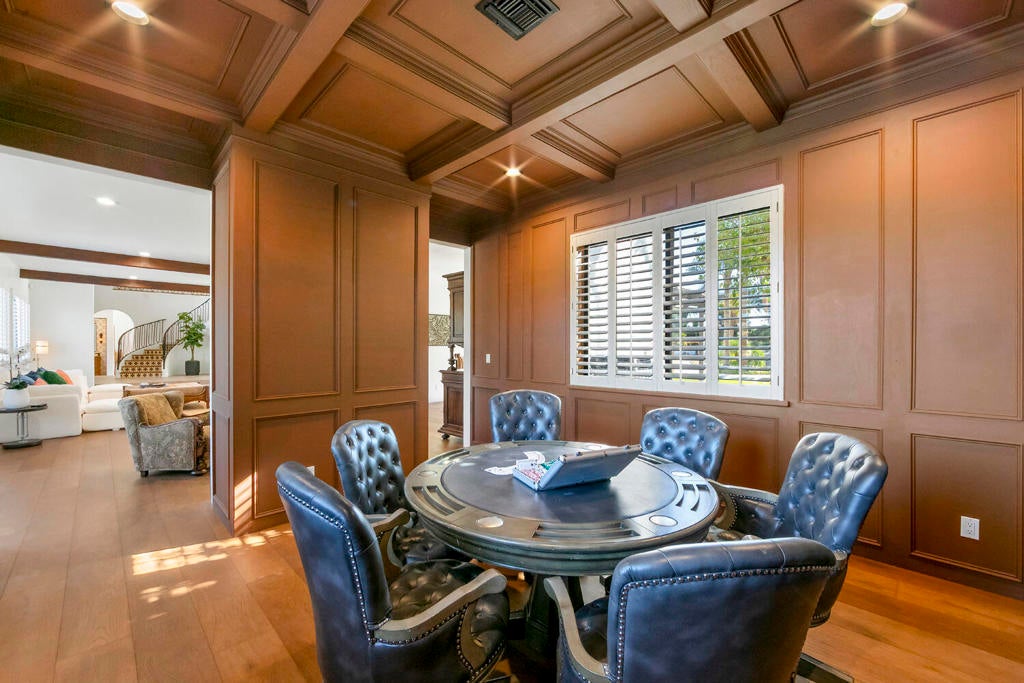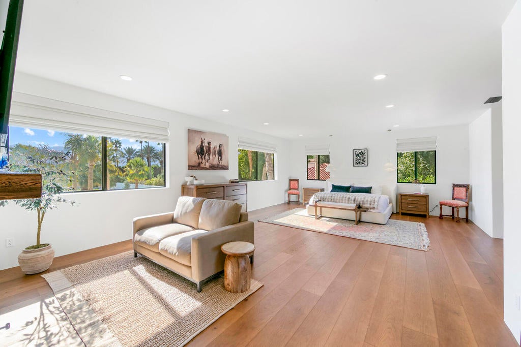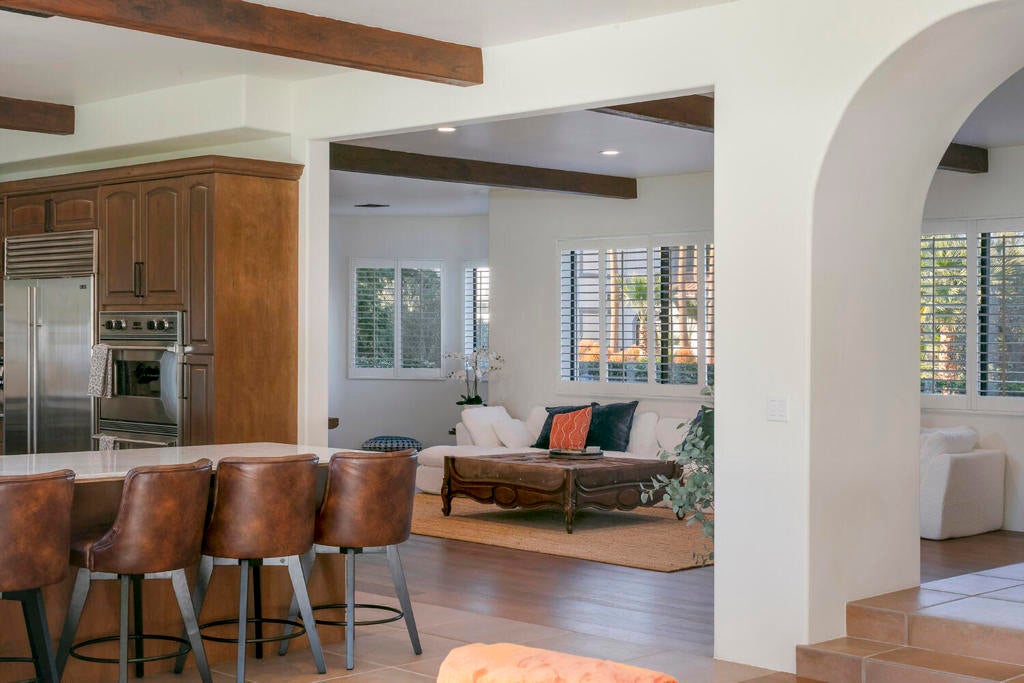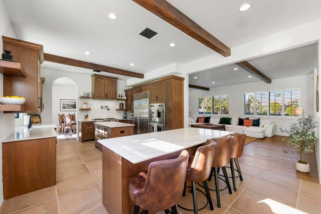 Located behind the gates of The Estates of La Quinta, 81935 Mountain View Lane presents a rare opportunity to own a true resort-caliber estate in one of the desert's most private and sought-after enclaves. Perfectly positioned near the world-class Desert International Horse Park, the Jacqueline Cochran Regional Airport, PGA West, and the exclusive Madison Club, this property offers unmatched access to elite lifestyle amenities while maintaining exceptional privacy within La Quinta. The estate is set on an expansive 1.25 acres, providing exceptional space, privacy, and the scale necessary to support its resort-style amenities and grounds. Designed for both grand-scale entertaining and everyday luxury, the estate showcases one of the Coachella Valley's largest resort-style pools, enhanced by dramatic cascading water features and expansive lounging areas. A private par-3 golf hole with crushed white Augusta-style sand bunkers creates a one-of-a-kind backyard experience rarely found in residential estates, delivering a true country club atmosphere at home.The residence has been thoughtfully remodeled with high-end finishes and architectural details throughout its six bedrooms and six-and-a-half bathrooms. Interiors feature 10-inch wide-plank European oak wood flooring, imported Spanish tile, and Carrera white marble throughout. Custom tile bathrooms, two indoor Jacuzzi tubs, and solid 8-foot alder doors elevate the sense of craftsmanship and quality at every turn. The gourmet kitchen and entertaining spaces are anchored by Wolf and Sub-Zero appliances, three wine refrigerators, a full wet bar, and a dramatic 17-foot Fleetwood-style bi-fold door that seamlessly connects indoor and outdoor living. A six-foot pass-through window further enhances the flow for hosting, while custom cast-iron A/C vents and a whole-house central vacuum system reflect the home's attention to refined detail and modern convenience. 81935 Mountain View Lane is a rare offering that blends privacy, proximity, and resort-level amenities into a single exceptional estate--an ideal retreat for those seeking the highest level of luxury living in La Quinta.