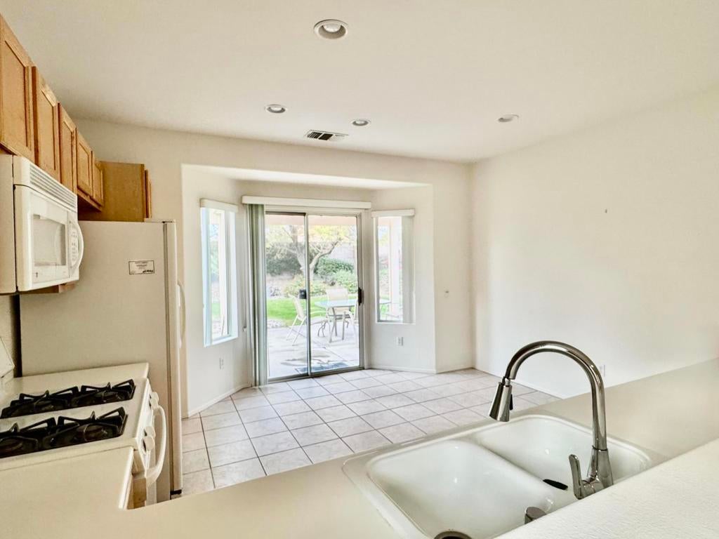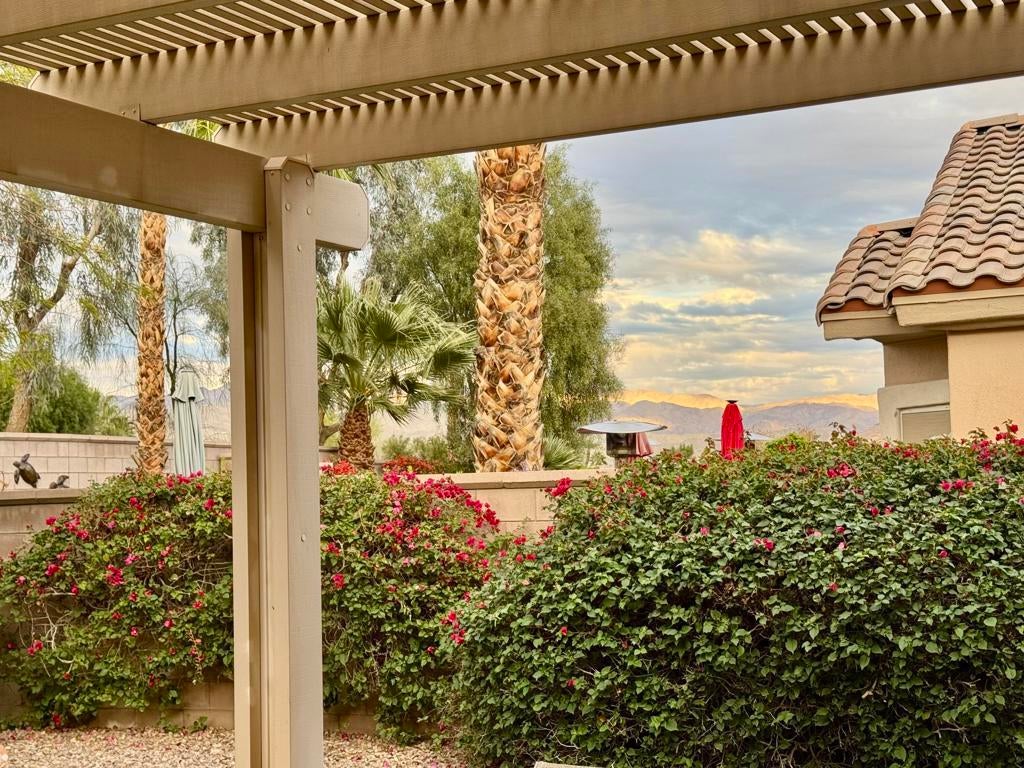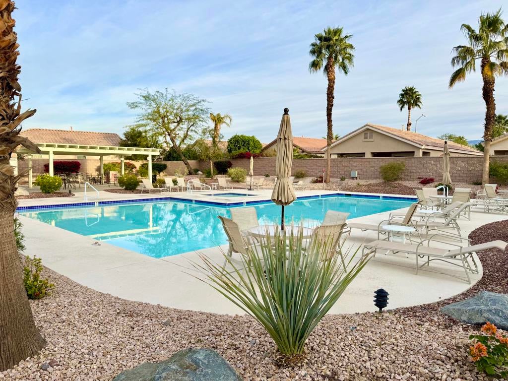 Located in the California Casual section of Sun City Palm Desert. This Pasadena model is freshly painted with new flooring and no carpet. There are 2 bedrooms and 2 bathrooms. The kitchen has a breakfast area with direct access to a private yard with grassy area and covered back patio. The homes in this section share their own pool and spa but are entitled to use all the other clubhouses and amenities in the complex. This area also has a direct cart entrance into the local shopping center parking lot and is close to convenient resident entrance gate. A great home for a single or couple.