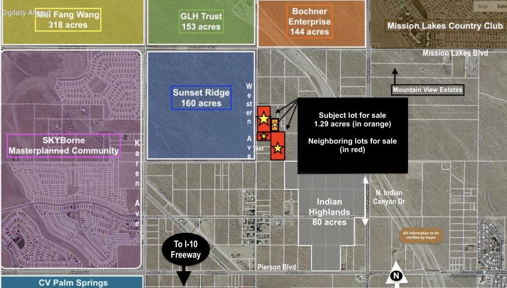 Incredible location with beautiful 360 degree views, windmills dancing in the distance, and .5 miles inland from major road (N. Indian Canyon Dr.) that transverses all the way to the south-end of Palm Springs. This area is booming and has seen tremendous growth in the past years. The cannabis industry has transformed the area North of this property and has created high demand for housing. This 1.29 acres/ 56,192 sq ft parcel can be purchased on its own or with adjoining lots to create a 12.80 acre spec or tract home development, or simply for one's own enjoyment of this serene land. This is a rare opportunity that may never be available again. The future of Desert Hot Springs is growth and expansion, being named one of the most financially stable cities in the state, the future is more than bright, it's a smart investment. Note: This property is zoned for residential use. Access to the property is off Western Ave., please contact the agent for showing access and specific coordinates, there are no markers on the property. Buyer to do own due diligence on property and surrounding land ownership/use. Contact Desert Hot Springs Planning Department to inquire about the potential uses of this property.