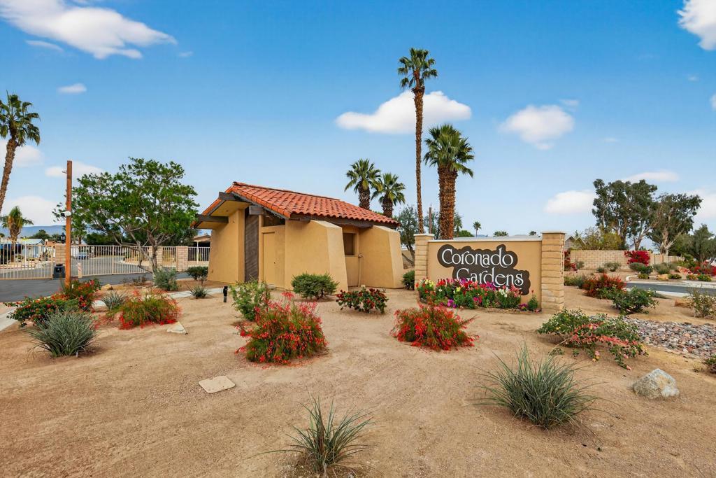 Discover the perfect blend of comfort, community, and Coachella Valley living in this charming 2-bedroom, 2-bathroom manufactured home in the sought-after Coronado Gardens community. Best of all, you own the land--providing peace of mind and flexible financing options.Coronado Gardens offers an active, social lifestyle with amenities designed for enjoying your best years. Take a refreshing dip in the sparkling pool or unwind in the heated spa. Stay active on the tennis and pickleball courts, or get your workout in at the on-site fitness center. The beautifully appointed clubhouse is the heart of the community, featuring a fully equipped kitchen, billiards room, card room, and library--perfect for planned activities, clubs, and making new friends. RV storage is available for those who love to travel, and the lushly landscaped grounds with mature fruit trees create a peaceful retreat you'll love coming home to. With a pet-friendly policy and gated entry, this welcoming community has it all.Indio offers the perfect desert lifestyle with sunshine year-round. Try your luck at Fantasy Springs Resort Casino, sample a famous date shake at the historic Shields Date Garden, or explore local history at the Coachella Valley History Museum. Golf enthusiasts will appreciate nearby courses including Terra Lago and Indian Palms Country Club, while nature lovers can explore the Living Desert Zoo and Gardens or take a day trip to Joshua Tree National Park. Catch a polo match at the Eldorado Polo Club during winter season, or simply enjoy convenient access to shopping, dining, and entertainment.Enjoy peace of mind with JFK Memorial Hospital just minutes away for all your healthcare needs. The prime central location puts you close to the upscale shopping and dining of La Quinta and Palm Desert, with El Paseo--the 'Rodeo Drive of the Desert'--just a short drive away. Palm Springs, Indian Wells, and Rancho Mirage are all easily accessible, giving you the best of everything the valley has to offer.Your Desert Dream awaits! Come take a look!