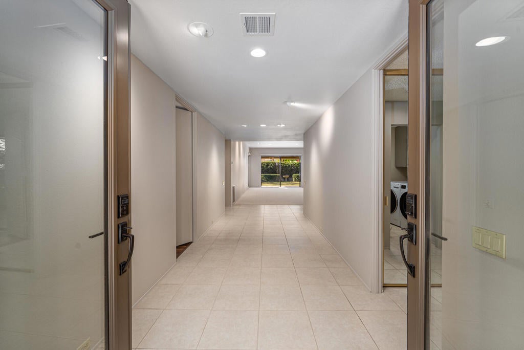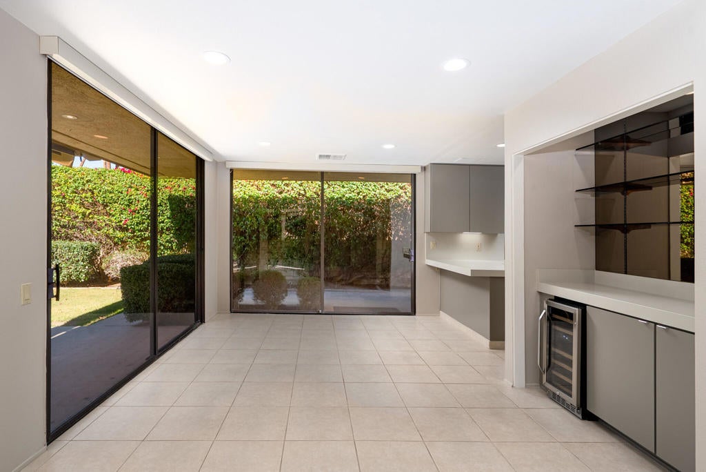 Welcome to this newly refreshed 4 bd, 4 bth residence located in a quiet and undisturbed part of the beautifully maintained community, The Springs. The entire interior has been reimagined with a clean and neutral palette all with an eye to creating a sense of serene comfort throughout.Mature trees greet you as you step inside the formal entry into a spacious family room with a travertine covered fireplace and a wall of sliding doors to the patio and views beyond. A wet bar and breakfast room adjoin the recently renovated kitchen with all new quality appliances, new countertops, refreshed cabinet faces and updated hardware.The nearly 3000 sf interior has been freshly painted with the primary suite enjoying an updated double vanity ensuite bathroom and direct access to a partially covered patio. In addition, there are 3 generous bedrooms, two of which feature updated ensuite bathrooms. Another bedroom enjoys an updated Jack and Jill bathroom configuration making it an ideal flex room connecting to a lovely landscaped front patio. Outside, the back patio area with mature landscaping and stunning westward views, can be enjoyed year-around with its automatic awning. The two-car garage includes a dedicated golf cart space.The Springs offers numerous resort-style amenities including multiple swimming pools, tennis and pickleball courts, championship golf, a fitness center, spa services, and several dining venues--all within a secure, 24 hr guard-gated environment. Fee Land (You own the Land).
