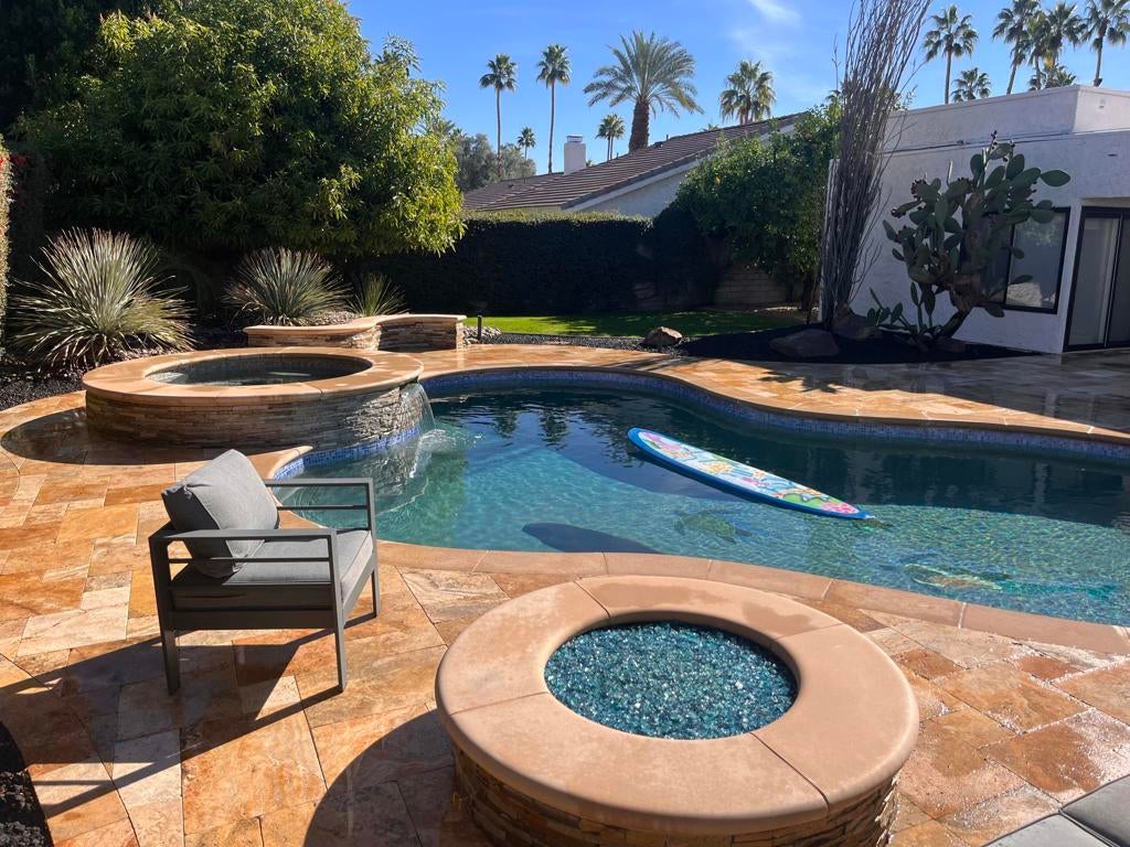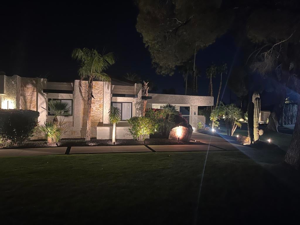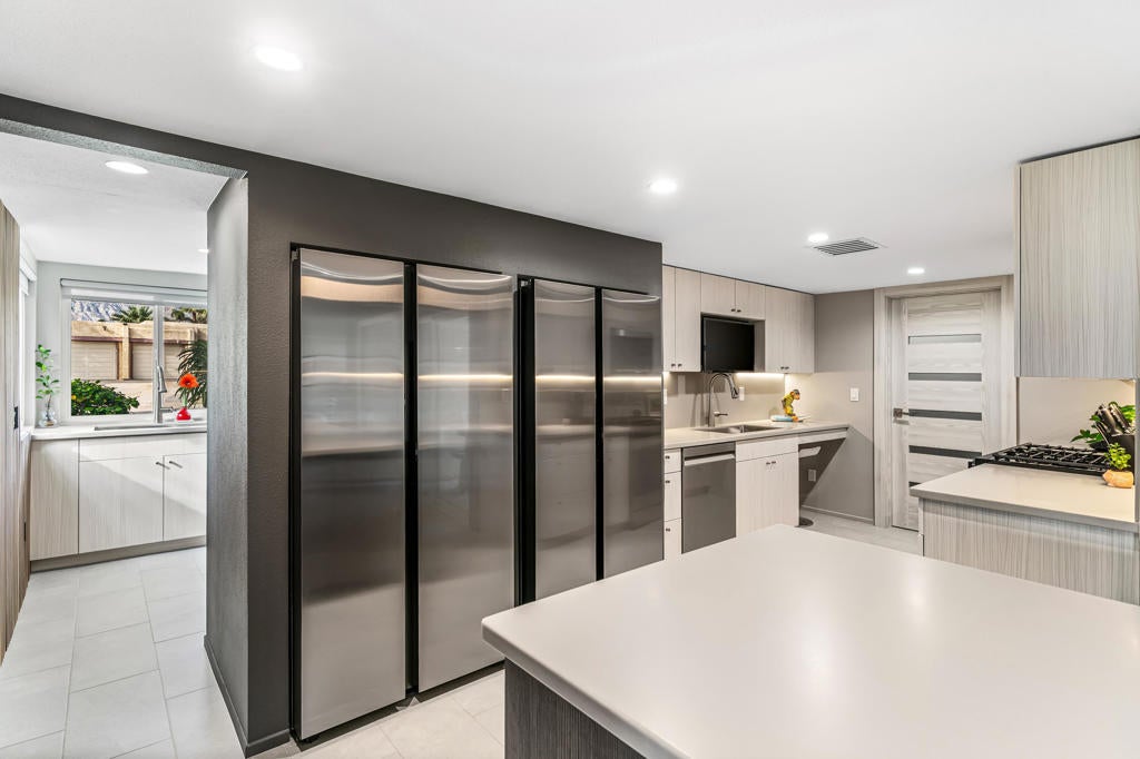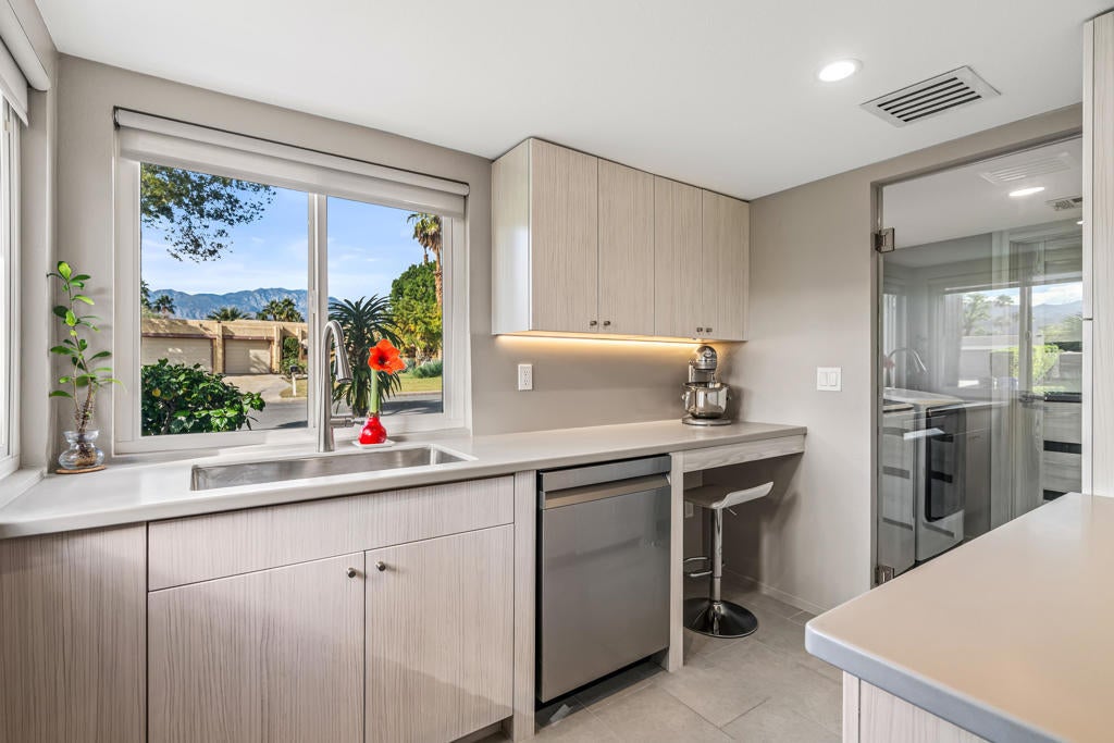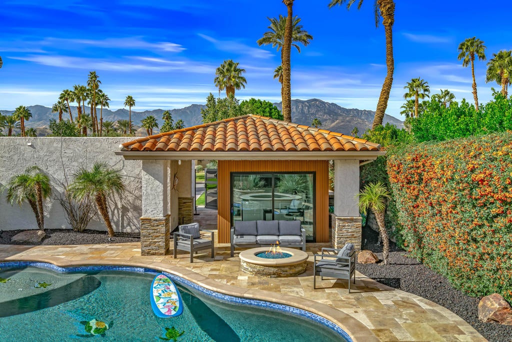 ELEGANT, SIMPLY ELEGANT! Modern Luxury in the Heart of Tamarisk - Rancho Mirage -Located in the highly sought-after Tamarisk area of Rancho Mirage, fabulously positioned between Tamarisk Country Club and Mission Hills Country Club, this extensively remodeled contemporary residence offers refined desert living in one of the most Exclusive Non-Gated communities in the Coachella Valley.Set on a desirable corner lot, this 3-bedroom home, with a bonus room, great for office or den, has been thoughtfully redesigned from top to bottom with a focus on modern architecture, quality craftsmanship, and seamless indoor-outdoor living.The open-concept floor plan is anchored by a stunning contemporary dual kitchen workspace featuring custom cabinetry, oversized island, designer Corian countertops, dual sinks, dual refrigerators, dual dishwashers, premium designer appliances, and a Butler's Pantry, ideal for both everyday living and for entertaining. Note also specialty Italian-designed interior doors, and the dramatic oversized Pivot Entry Door. Large-format designer tile flooring, upgraded baseboards, and custom lighting elevate every space.All 3 bathrooms (2 ensuite) have been fully remodeled with spa-inspired finishes, State-of-the-Art fixtures, and interior glass spa doors. Smart-home upgrades include Nest Climate Control and safety systems, dual air conditioners, and modern digital security and gate systems.The backyard has been transformed with approximately $150,000 in hardscaping and landscaping, creating a private resort-style setting. Enjoy a fully updated pool and spa with specialty lighting, outdoor dining area, outdoor living area, exquisite gas fire pit with seating areas, built-in BBQ and outdoor kitchen. Mature landscaping, automated sprinkler and drip irrigation, mango and citrus trees, and outdoor security lighting complete the experience.You will also find a detached 'sidekick' room by the pool - great for an art studio or extra office with custom cabinetry and mini-fridge. Additional highlights include covered front courtyard with seating, expansive driveway, and a rare triple-car garage with modern glass doors. The exterior has been modernized with updated paint and stonework, reinforcing the home's clean, contemporary aesthetic.Quiet, private, and impeccably upgraded, this home offers a rare opportunity to own a truly turnkey modern residence in one of Rancho Mirage's most desirable locations. This is a MUST SEE!!