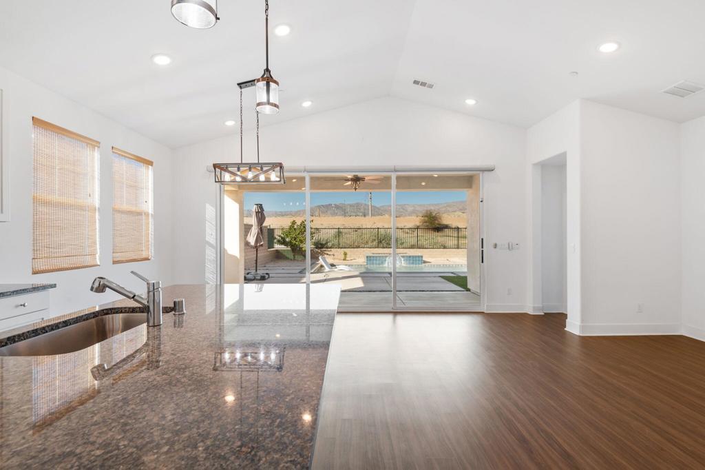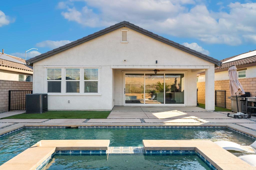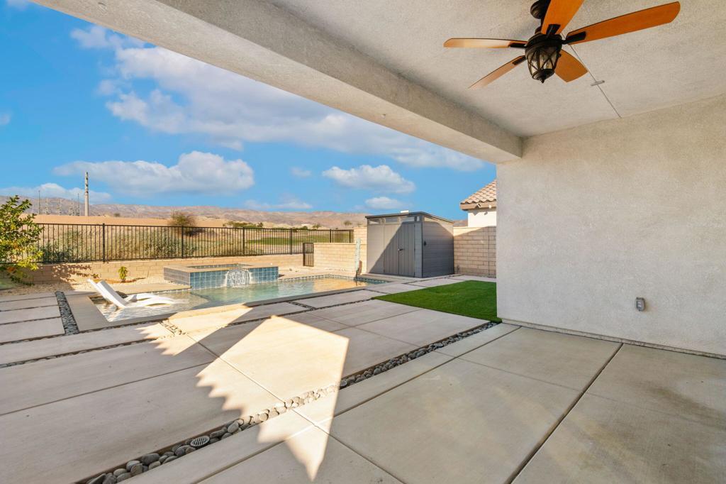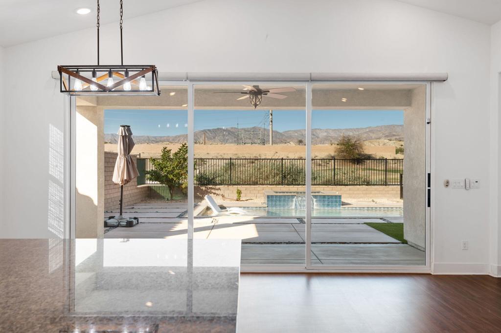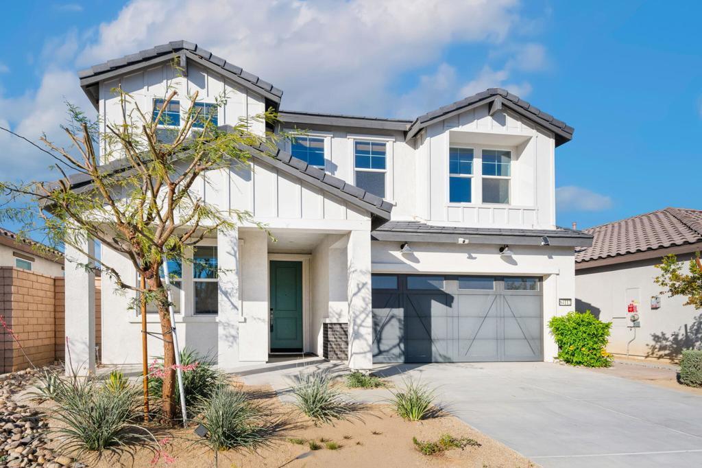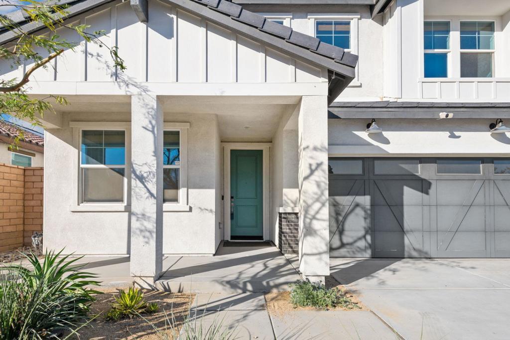 Beautiful move-in ready home in one of Indio's most sought after gated communities! Built in 2023, this spacious, light and bright home offers seamless indoor/outdoor living with a collapsing wall of glass that opens to the resort style saltwater pool and expansive views. This home lives like a single story with a FIRST FLOOR PRIMARY SUITE! Boasting two iiadditional bedrooms, PLUS a dedicated OFFICE with Murphy bed and an upstairs LOFT area for even more flex space. There's even a dog run! This beautifully upgraded property features money saving leased solar and an EV charger in the garage. As an added bonus, this home offers excellent potential as a short term rental investment (subject to HOA rules). Comfort, style and security all reside at 84112 Caviano Drive and now, you can too!