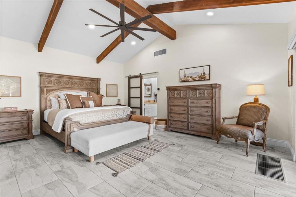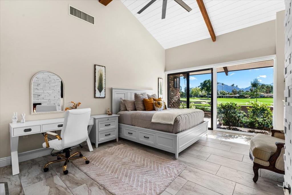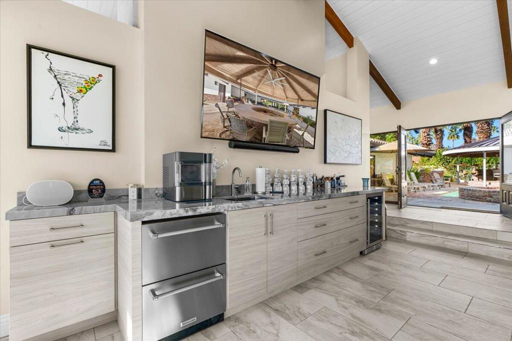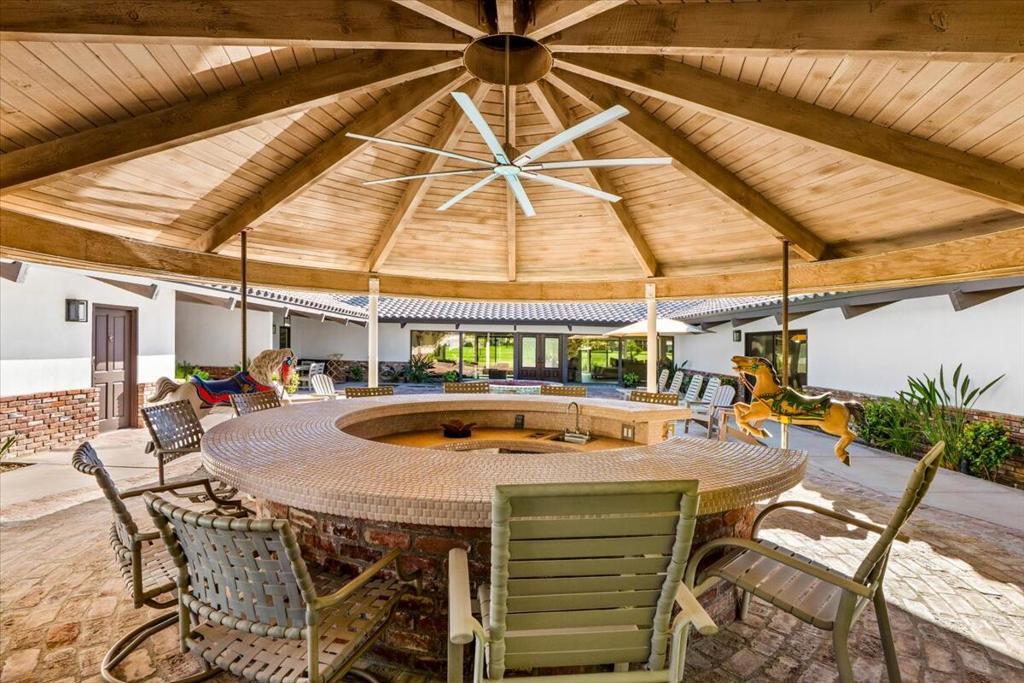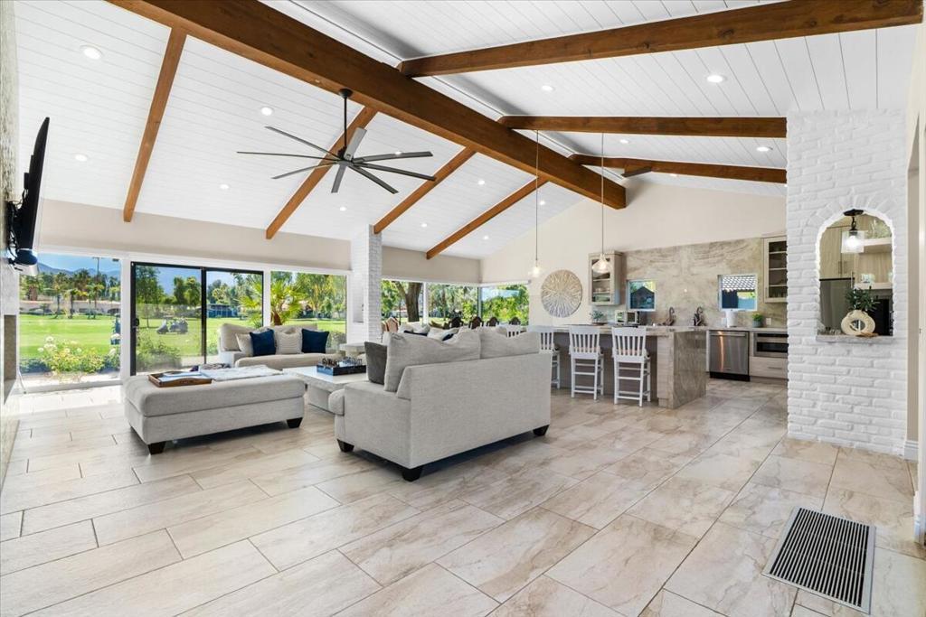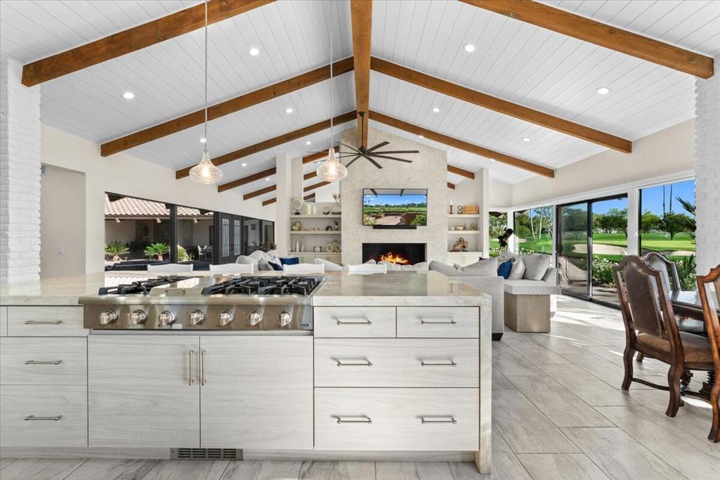 A rare opportunity to experience an exceptionally luxurious property nestled on the 14th hole of La Quinta Golf Estates. This exquisite well appointed 5 bdrm 4 1/2 bath cornerstone of tranquility is fiercely intentional about your privacy and comfort! The main residence offers 4 spacious bdrms inside while the detached private casita is complete with its own kitchenette and living area providing the ideal space for guests or extended family! The main residence features a chef's gourmet kitchen, expansive living spaces and breathtaking golf course and mountain views from every room! This open concept property is designed for seamless indoor-outdoor living. Tv's located in every room complements the surround sound system throughout that also extends to the courtyard - here you will find the perfect recipe for entertaining at the carousel BBQ and Bar. Multiple lounge areas create the perfect setting for entertaining or relaxing in total privacy!Now booking for the 2026/2027