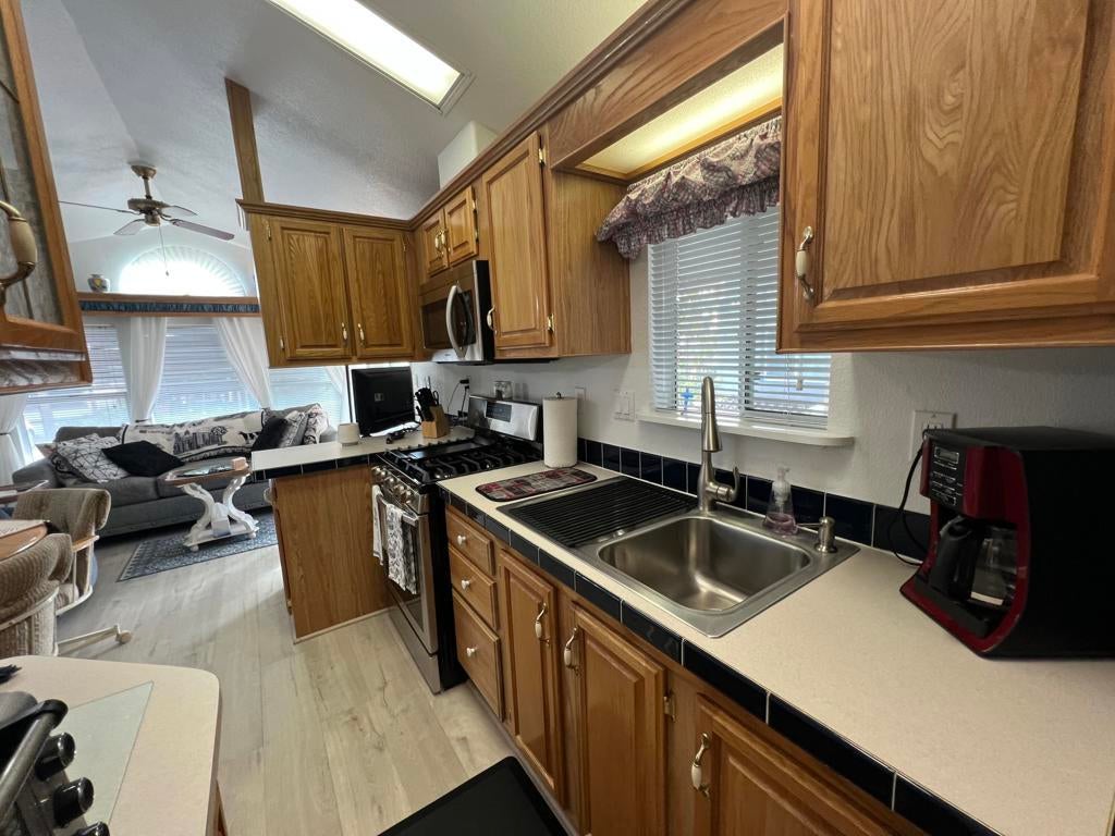 FULLY REMODELED, GORGEOUS INTERIOR, NEW STAINLESS STEEL APPLIANCES AND FURNITURE INCLUDED. Welcome to this beautifully remodeled 2-bedroom, 1-bath park model home--an ideal retreat designed for comfort, relaxation, and effortless living. The home features a gorgeous updated interior with new flooring throughout the living room and bathroom, a brand-new A/C unit, new stainless steel appliances, and all furniture included for true turnkey convenience.Recent upgrades include a freshly painted interior and exterior, a newly painted patio deck, a resealed and painted roof, brand-new water heater, and updated water piping throughout the unit. Every improvement has been thoughtfully completed, and the home has been meticulously maintained with exceptional care.Located within the quiet, gated Sky Valley Resort, this property offers the perfect balance of vacation living and full-time residency. Residents enjoy an impressive array of resort-style amenities, including 13 hot mineral pools and spas, fitness center, sauna, tennis and pickleball courts, basketball, horseshoes, farmers market, cafe with chef, library, chapel, and dog park.Conveniently situated just 6 minutes from the nearest market, 15 minutes to town, and approximately 25-35 minutes to Palm Springs and major festivals.DMV registered with no HOA fees and no property taxes.Do not miss this incredible opportunity to own a beautifully updated, move-in-ready home in a highly desirable resort community.