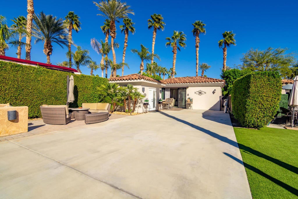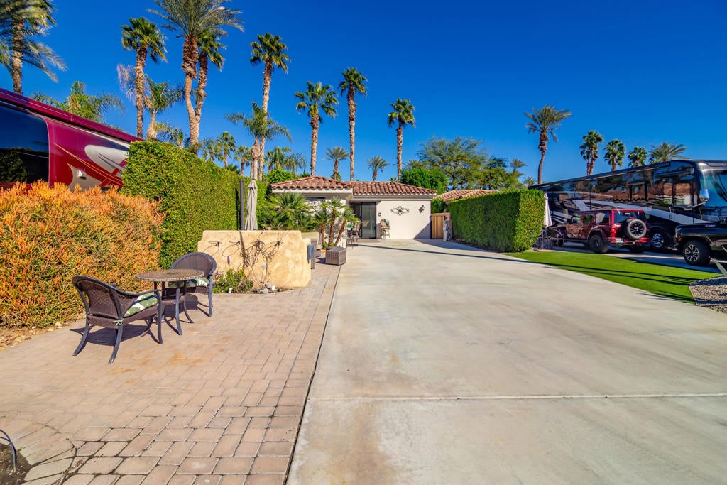 Lot 30 located in Motorcoach Country Club is a thoughtfully developed privacy lot, offering a functional layout designed for comfortable day-to-day living with strong privacy. The lot features a detached casita, tile roof shade structure, expanded front paver parking, and a fully enclosed private yard.The front of the lot includes expanded pavers providing additional parking and golf cart space, along with multiple seating and conversation areas that create a welcoming and versatile outdoor entry.The tile-roofed shade structure functions as an enclosed living space and includes a seating area with fireplace, kitchen, and a Murphy bed for guests, making it a flexible extension of the coach for everyday use or hosting overnight visitors.The detached casita has been remodeled to include a spa-style bathroom with a nicely sized shower, ample counter space, and a full-size washer and dryer with dedicated folding counters, offering excellent functionality for extended stays.Between the casita and shade structure is a built-in outdoor kitchen and BBQ island, with an awning extending from the shade structure to provide shade over the cooking area and create a natural indoor/outdoor connection.The backyard is fully enclosed with tall privacy walls, creating a cozy and intimate outdoor space. The enclosed layout offers a quiet, private setting that works well for relaxing outdoors, spending time with pets, or enjoying peaceful evenings.Priced at $300,000, the seller has positioned this property for a straightforward sale and prefers minimal negotiations. Property to be sold as-is, with no repairs or credits. Buyer to complete any inspections and due diligence.Lot 30 is well suited for buyers seeking a private, low-maintenance lot with a comfortable indoor/outdoor flow in a convenient Avenue 48 location.Motorcoach Country Club exclusively accommodates Class A motorhomes from 30' to 45'. Due to zoning, on-site properties are not considered dwellings, and overnight stays inside them are not allowed. MCC's annual Food & Beverage minimum is $2,080.