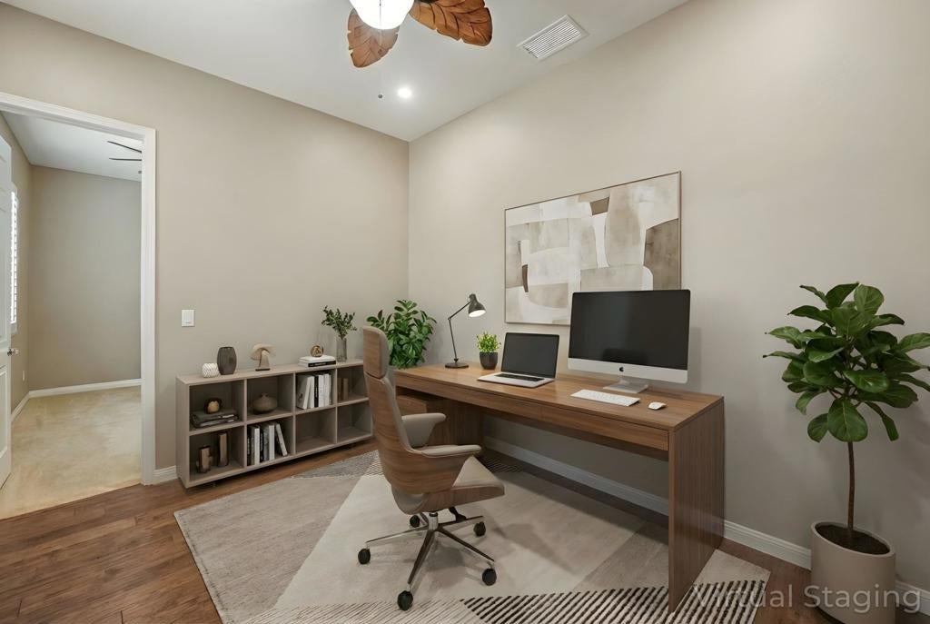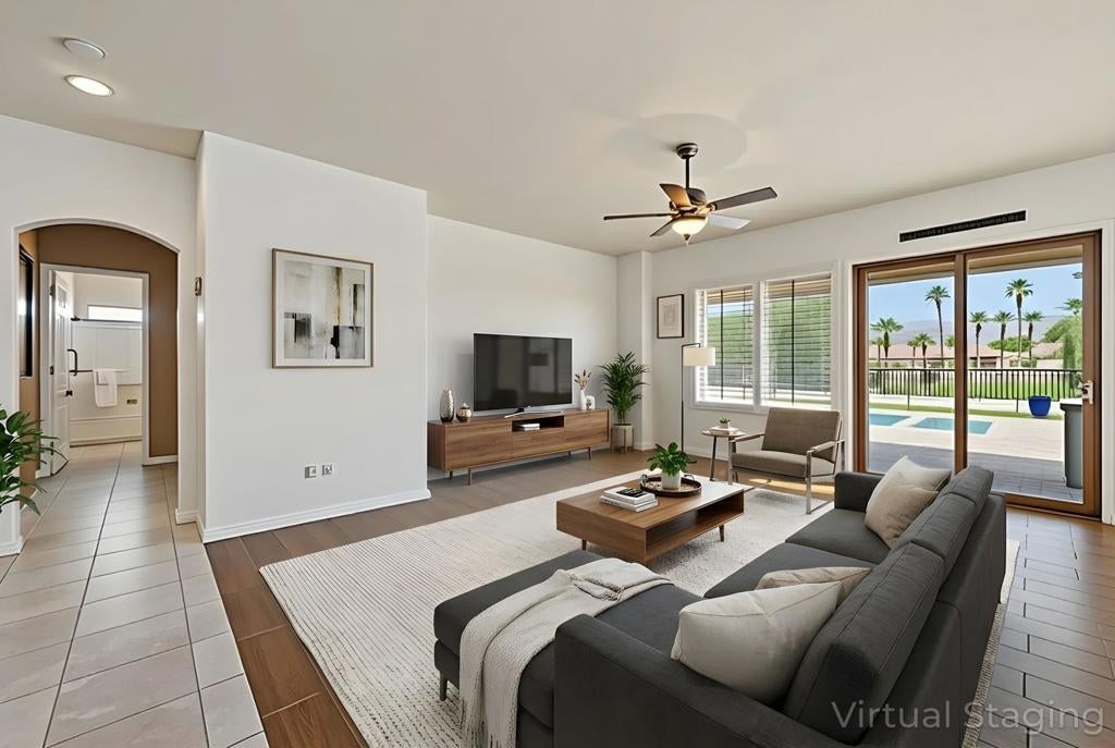 REDUCED by $25k! This stunning north-facing San Benito model offers panoramic mountain views overlooking the fairway's greenbelt without the worry of incoming golf balls. The backyard is a true entertainer's oasis, featuring a new pool and spa plus a built-in barbecue; perfect for gatherings or private relaxation. Inside, you'll find 2 bedrooms, 2 bathrooms, and a versatile two-room office/flex space that can serve as a third bedroom, artist studio, and/or den. The spacious primary suite provides comfort and privacy, while the open kitchen with breakfast nook flows seamlessly for everyday living. Additional highlights include a 2-car garage plus golf cart garage, ample storage, and all the features that make the San Benito floor plan one of the most popular in the community. This home combines views, style, and a brand-new pool and spa: an incredible opportunity you won't want to miss!