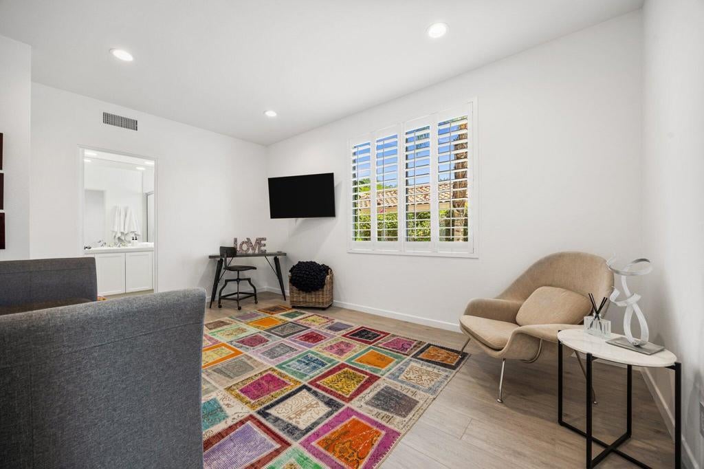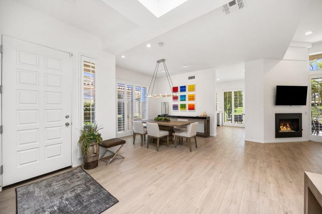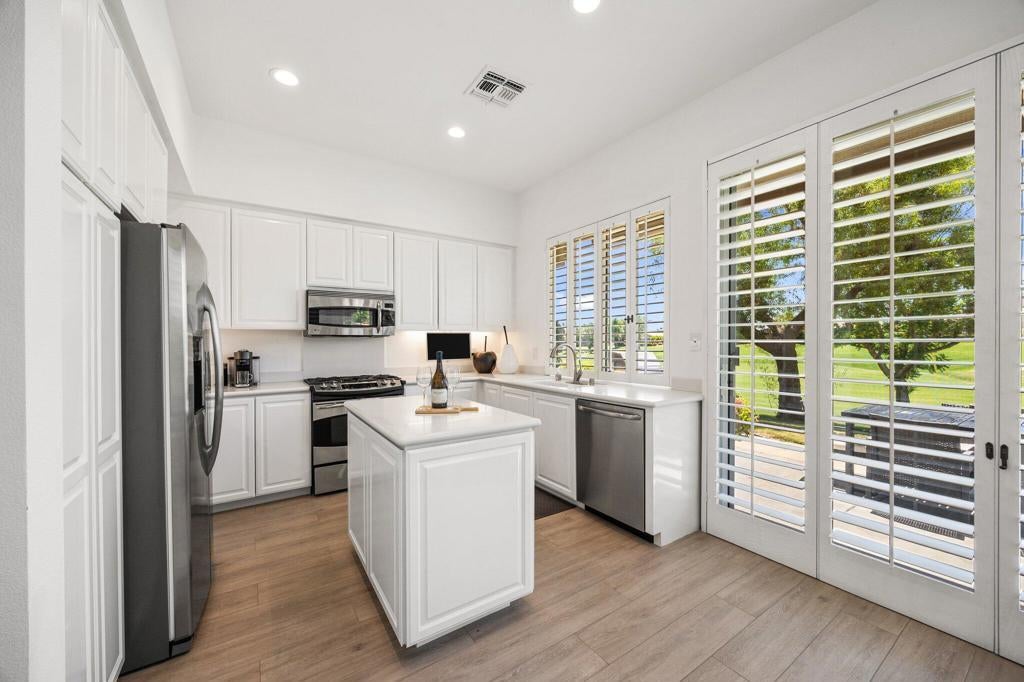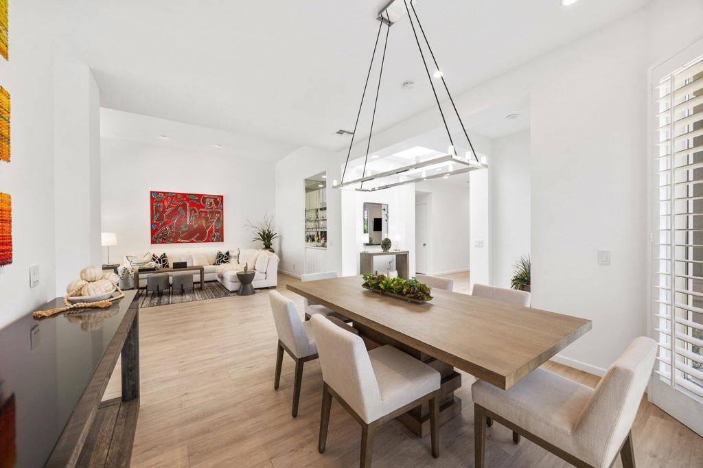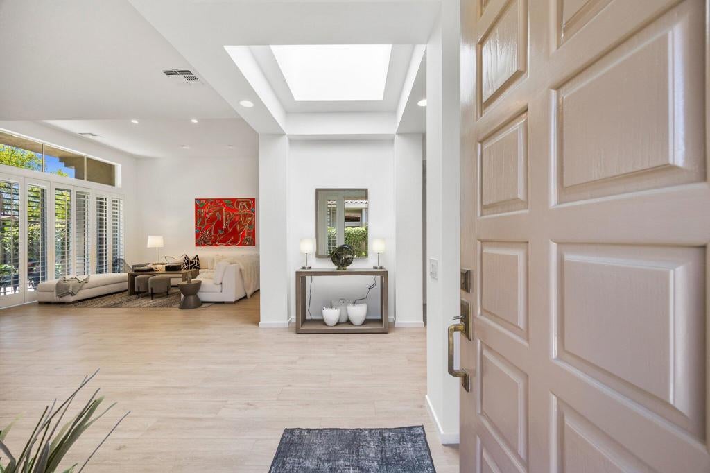 Available Now through April 2026! South-Facing Golf Course Living at Its Finest - Welcome to 763 Box Canyon Trail! Nestled in the heart of Indian Ridge Country Club, this beautifully maintained home offers the perfect blend of resort-style living, elegant comfort, and stunning golf course views. Positioned along the 7th hole of the Grove Course with a desirable south-facing orientation, this property captures abundant sunshine and showcases panoramic fairway vistas - plus a peaceful water view to the east that adds to the tranquil charm of the outdoor space. Step inside the Acacia 4 floor plan, offering 2,182 square feet of light and bright living space with 3 spacious bedrooms and 3.5 bathrooms. The interior has been thoughtfully updated with new plank tile flooring that flows seamlessly from room to room, creating a clean, contemporary feel. The open-concept design allows for easy entertaining, while large windows frame the natural beauty of the surroundings and flood the home with warm desert light. Outdoors, the back patio is an entertainer's dream, complete with a built-in BBQ, ideal for weekend grilling, hosting guests, or simply enjoying a quiet sunset with a cocktail in hand. Whether you're sipping morning coffee with views of the water or watching golfers navigate the fairway, every moment feels like a getaway. This home is furnished with Restoration Hardware plus the use of the owner's golf cart. Owner pays monthly HOA dues that include cable and internet.