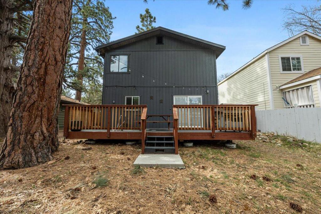 Wow! Unique opportunity with this beautifully remodeled 2 bed, 1 bath -AND- a newly constructed and permitted 1 bed, 1 bath AUD unit below. The ADU has its own electric meter and address. Would be great for a full-time rental situation or mother-in-law suite! Upstairs in the main home, you will find a light and bright open floor plan living space, a completely remodeled kitchen with stainless appliances and a gorgeous kitchen island. Great space for entertaining! Relax and enjoy the beauty of Big Bear from your west facing upper deck out the kitchen/ dining area. Down the hall you'll find 2 beautiful bedrooms and 1 fully remodeled full bathroom. It's gorgeous and turnkey, ready to enjoy! * Below, around the right side of the home outside, at the first-floor level, you will find the brand new permitted ADU unit with its own separate entrance and large back deck to enjoy the fresh mountain air and morning sunshine. Completely remodeled 1 bed, 1 bath, with stainless appliances and tastefully decorated. Also turn-key and ready to enjoy! And don't forget the large two car attached garage with laundry. A true gem! Must check it out!