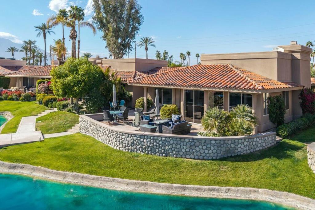'Don't miss the boat to the desert's exclusive waterfront sanctuary, combining breathtaking southern mountain views with serene lakefront scenery.' The highly sought-after St. Tropez floor plan is designed to highlight indoor and outdoor living, with the expansive living area, kitchen, and primary suite opening directly onto the lakeside patio. Recently refreshed, the home showcases dramatic beveled-glass entry doors, ceramic plank tile flooring, an updated kitchen, a spa-inspired primary bath, a new air conditioner, an EV charger, and a new washer and dryer. Offered furnished per inventory, this refined retreat is ready to move in. The large extended patio caters to social gatherings and offers a serene sight as residents and swans cruise by. Dock a boat just steps away, inviting you to take out the included paddleboat and enjoy a peaceful ride across the lake or a short paddle to the nearest pool.Ranked among the Top 40 Rancho Mirage Communities. Lake Mirage offers a guard-gated sanctuary with seven tennis courts, six of which are lighted, six pickleball courts, a fitness facility, and 11 pools and spas. A new cable TV/Internet package offers amazing savings. Residents may also enjoy optional membership to the SCYA Yacht Club and an active social calendar. Perfectly located just moments from world-class dining, upscale shopping, Eisenhower Medical Center, and Palm Springs International Airport, this Rancho Mirage haven offers a rare blend of luxury, leisure, and convenience. The community is also recognized as a Certified Wildlife Habitat by the National Wildlife Federation.