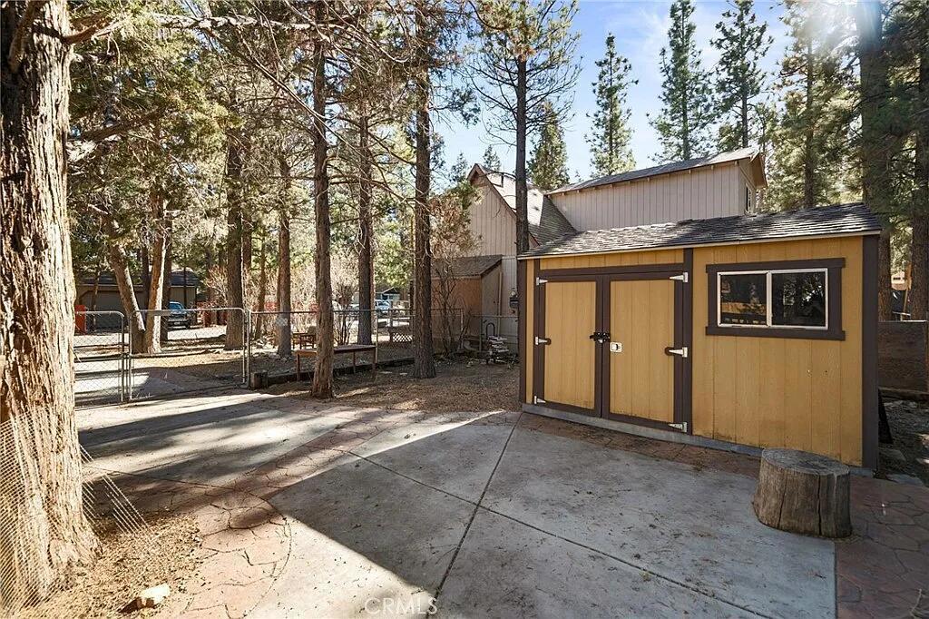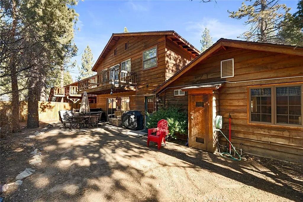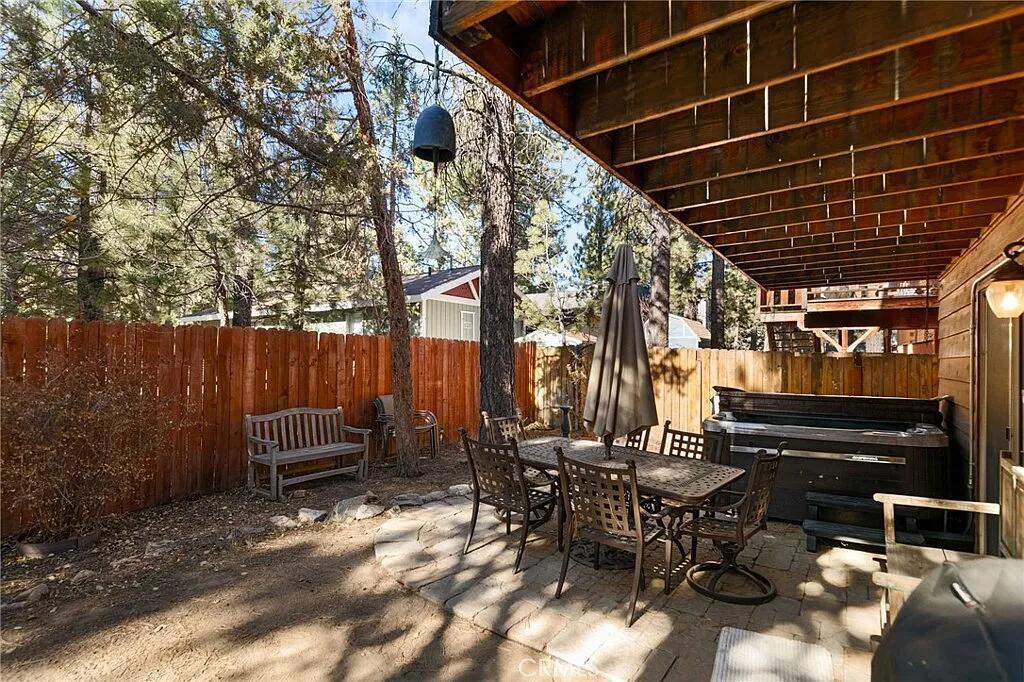 Tucked away in a peaceful setting just outside the main Big Bear traffic and bustle, this inviting mountain home offers the perfect balance of privacy, convenience, and outdoor living. Located close to hiking trails and nature, yet only a short drive to the lake, slopes, and town amenities, it's ideal as a full-time residence, weekend getaway, or income-producing investment.Inside, the home features a bright, open floor plan that feels warm and welcoming, with an efficient kitchen and comfortable living space designed for gathering and relaxing. The oversized primary suite is a true retreat, offering generous space, a spa-style bathroom with soaking tub, and direct access to one of two decks--perfect for enjoying crisp mountain air and quiet mornings. Two additional bedrooms, including one on the main level, provide flexibility for guests, family, or work-from-home needs.Outdoor living shines here with two spacious decks, a private hot tub for unwinding after a day on the trails or slopes, and a fully fenced yard ideal for pets. A separate storage shed provides convenient space for mountain gear, seasonal items, or tools. A Tesla EV charging hookup adds modern convenience and eliminates the need to search for charging in town.This property has been successfully operated as an Airbnb, offering strong appeal for short-term rental buyers. Well-situated, well-equipped, and ready to enjoy, this home delivers the Big Bear lifestyle without the congestion. Sellers may also consider an exchange for a condo in San Diego, creating a unique opportunity for the right buyer.