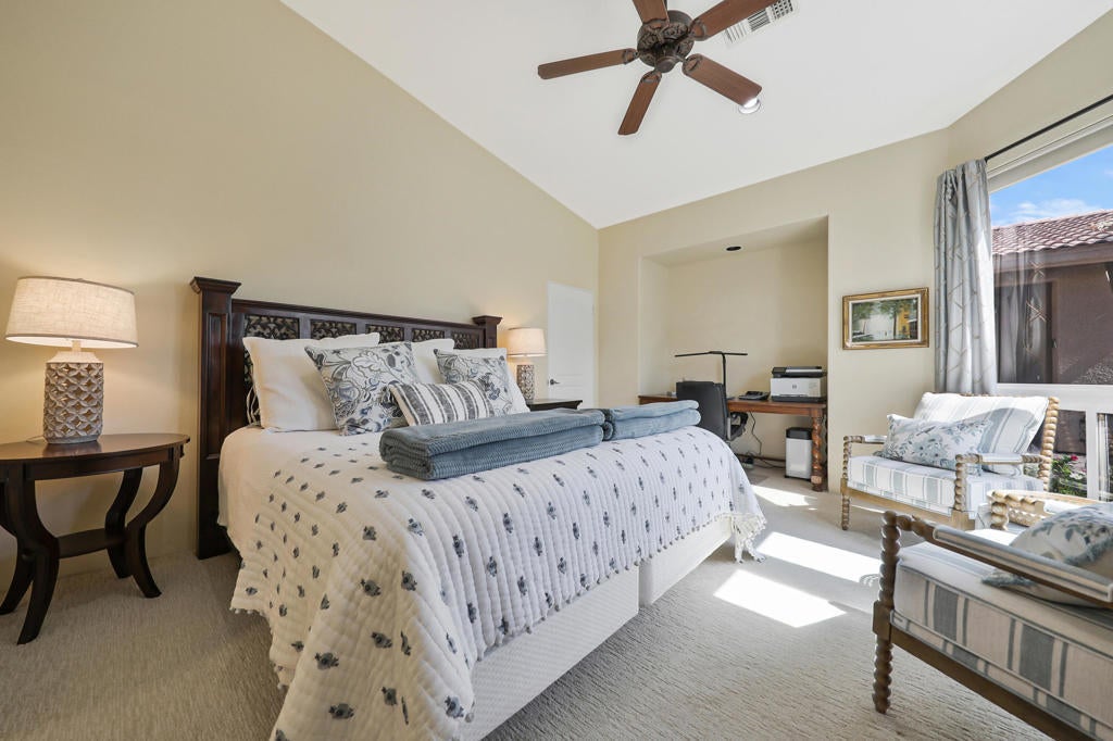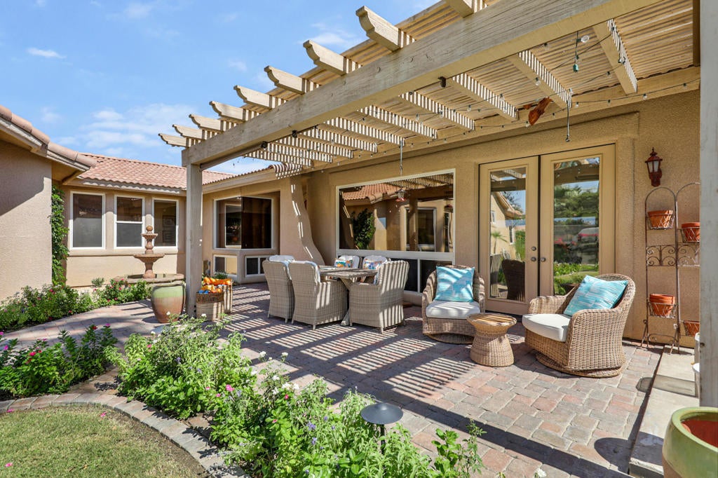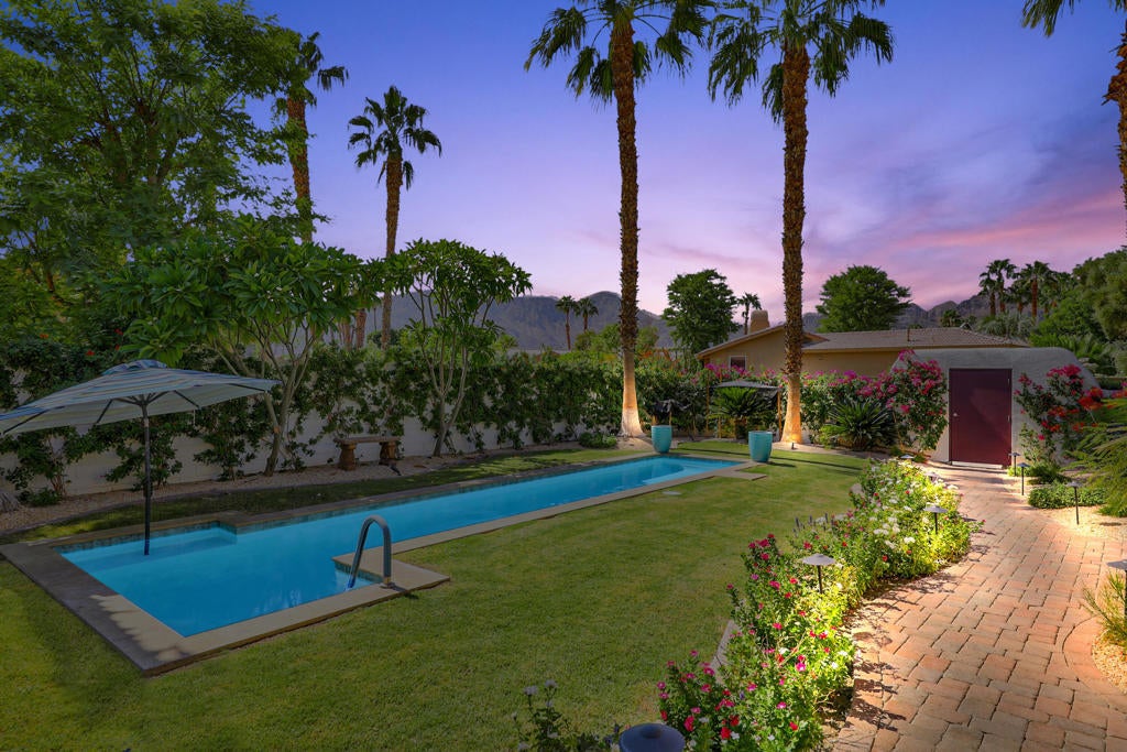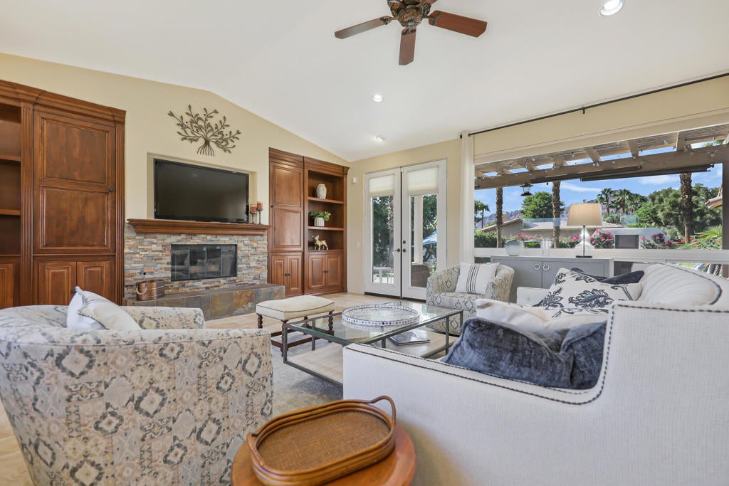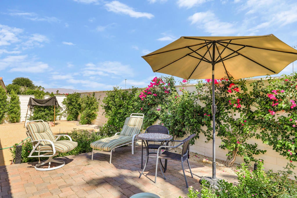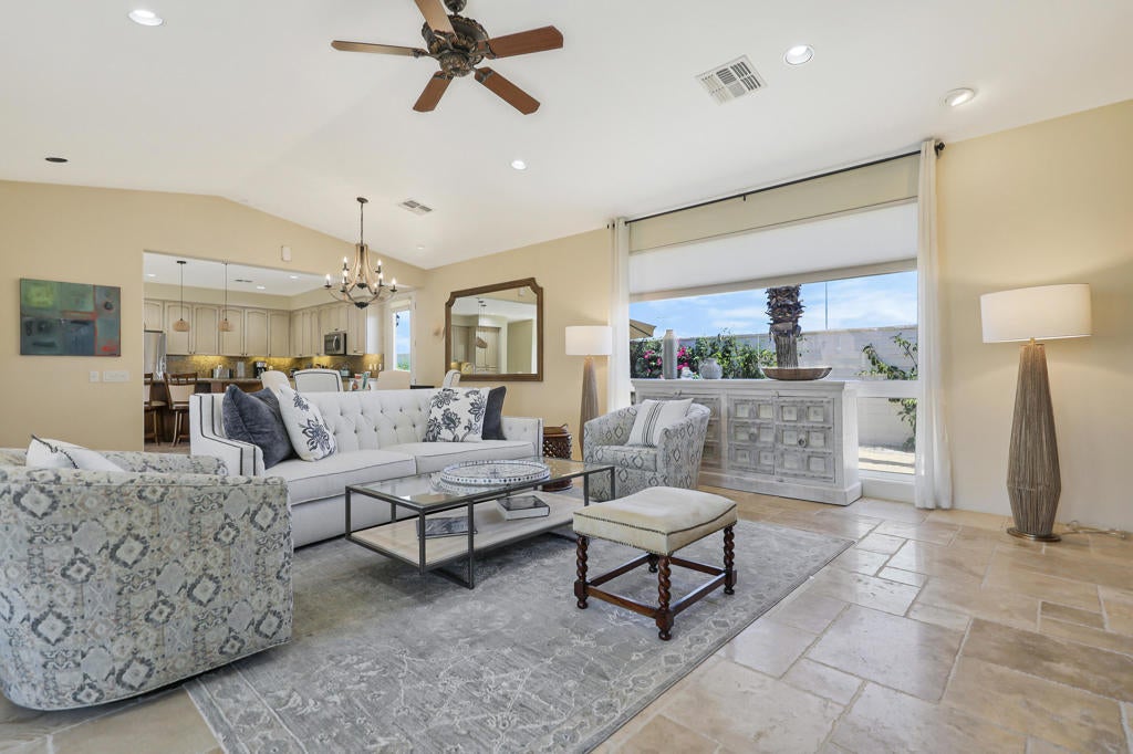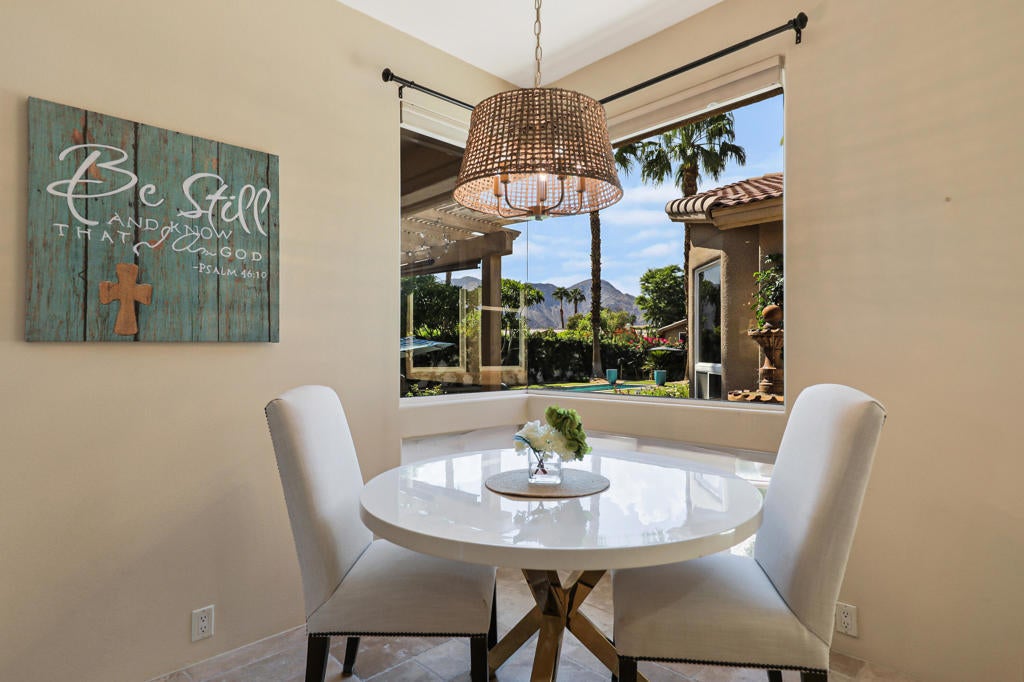 Welcome to the perfect desert retreat and an unbeatable lifestyle. AVAILABLE for APRIL! This stunning home offers 3-bedrooms, and 2 bathrooms in Rancho La Quinta Country Club. Features include breath taking views of the Santa Rosa mountains from the front and back yard. Step outside to your own private resort style oasis featuring a salt water pool, lush and tropical landscaping, privacy and serene, a beautiful patio area for your outdoor entertaining, along with a BBQ for those nights you want to enjoy the good life!. The Interior features an upgraded kitchen with granite countertops, stainless steel appliances, and a breakfast bar. The main Living room area boasts elegant Versailles- pattern travertine flooring, and features a beautiful focal point fireplace. The bedrooms are carpeted comfortably and furnished chic and stylish. The Master bedroom has a private en-suite with a soaking tub and shower, and upgraded with granite counters and travertine floors. This home is available for seasonal lease March and April 2026. Come enjoy the beauty of Rancho La Quinta Country Club for your next relaxing vacation! This home is ideally located in the heart of La Quinta. Walk or bike to Charming Old Town, and the famous La Quinta Resort, plenty of hiking trails, and close by are world renowned golf courses, you will find top rated restaurants & vibrant entertaining. Just minutes away you will discover El Paseo shopping district and the BNP Tennis tournament is just down the street.Call me for your private showing today! Lease terms are for 30 days!