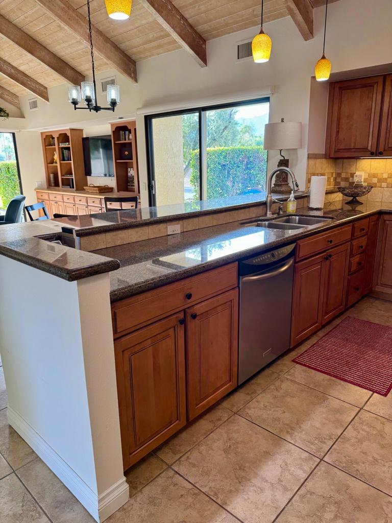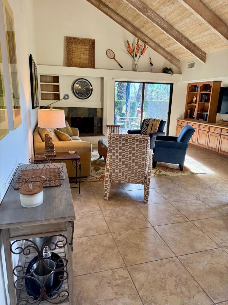 Comfortable refreshed and spacious 1-BR, 1 1/2 BA CONDO steps to Pool/Spa, Pickleball, Croquet, Tennis Courts & Clubhouse. Freshly painted and upgraded with new luxury electric blinds. Enjoy outdoor desert living with 3 separate patio areas with wonderful mountain views. The great room features stunning wooded vaulted ceilings, fireplace & dining area with large powder room nearby. Kitchen upgrades include custom cabinets, stainless steel appliances, slab granite counters & decorator light fixtures. Double French doors open to very roomy Bedroom Suite featuring views of the mountains, a private patio, bath with granite counters, Washer & Dryer, ceramic tile floor, spacious walk-in shower, dressing area & recessed lighting. Includes 2-car garage. Home has 2 smart TV's, plus new BBQ on private patio. Mission Hills Country Club is a guard-gated community, with gorgeous landscaping and ambiance. Call for available dates in March plus April $3200, May $2500, June-Aug $2200, Sept $2400, October $2600, November $2800, NOT AVAILABLE 12/1/26 thru 4/30/27.