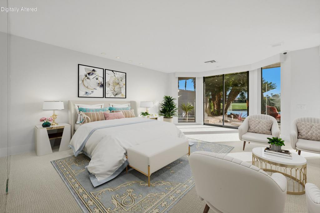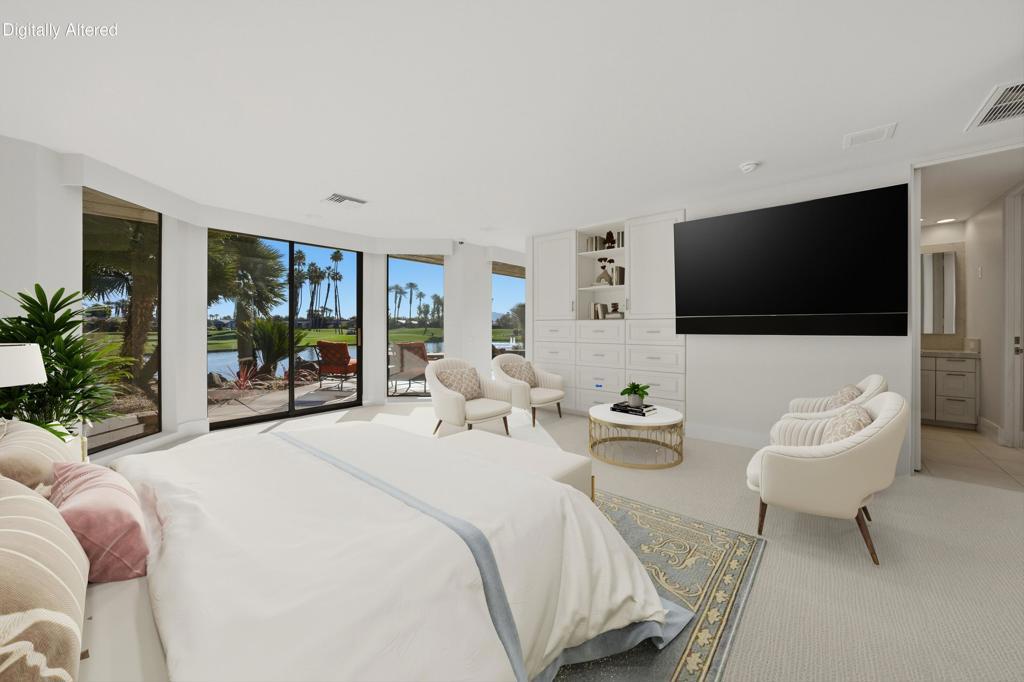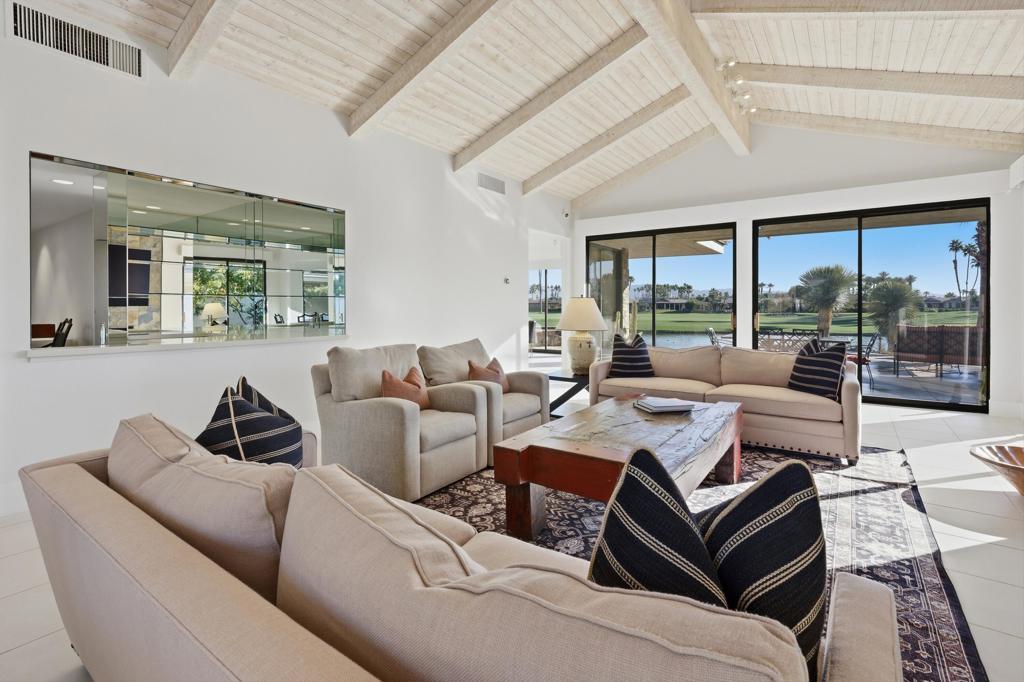 Forever Views! Welcome to 65 Mayfair Drive in the prestigious Morningside Country Club, Rancho Mirage. This stunning lakefront home sits on one of the community's most coveted lots. The remodeled, Wi-Fi-enabled infinity-edge pool appears to spill right into the lake, while the spacious rear patio offers breathtaking views of double fairways and the mountain range--perfect for al fresco dining and outdoor entertaining. Step into the private courtyard and feel the serenity of a lush garden with a bubbling fountain. Inside, the entertainer's dream layout boasts a soaring beamed ceiling great room, custom fireplace, wet bar, and a dining room that comfortably seats ten. Expansive glass doors blur the line between indoors and out, revealing a resort-like setting ideal for year-round desert living. The chef's kitchen includes an island with a secondary sink and premium stainless appliances, plus a bright, sunny ''Morning Room'' to start your day. The spacious primary suite offers built-in cabinetry and a separate sitting area/office, along with dual primary bathrooms--each with its own shower, closet, and water closet--for a spa-like experience. Two additional bedroom suites, each with a private bath, provide comfort and privacy for guests. Additional features include new skylights with architectural openings, whole-house water filtration, EV charging station, insulated garage doors, electric shades, security cameras, built-in safe, and partial furnishings--perfect for those who love to entertain. Membership Information: www.clubatmorningside.com/membership