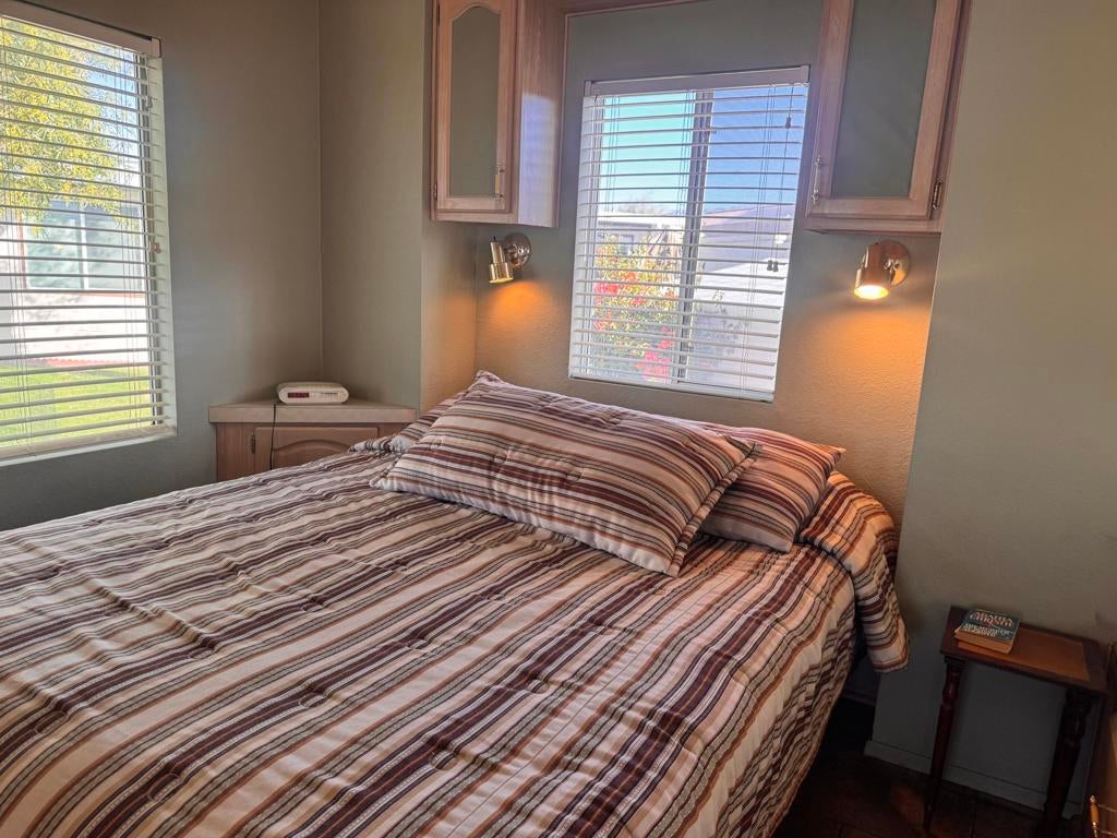 Located on one of the largest and most private lots in Rancho Casa Blanca, this beautifully maintained park model sits at the end of a quiet cul-de-sac, offering exceptional peace and privacy. The home features one of the largest decks in the entire community, perfect for outdoor entertaining, relaxing, or simply enjoying the serene surroundings.Designed for both comfort and functionality, the home includes a washer and dryer, a storage shed, and thoughtful use of space throughout. Whether you're hosting friends or enjoying a quiet retreat, this property truly has it all.Set within the highly desirable Rancho Casa Blanca community, residents enjoy an unmatched resort-style lifestyle with free year-round golf, a fully equipped fitness center, pickleball and tennis courts, and multiple pools and spas. Additional amenities include bocce ball, billiards, horseshoes, and two large clubhouses plus four satellite buildings offering over 60 clubs and classes. The community is guard-gated with regular security patrols, providing added peace of mind.Whether you're looking to stay active or unwind in a tranquil setting, this home offers the perfect blend of comfort, privacy, and vibrant community living -- and with a golf cart, getting around is a breeze.