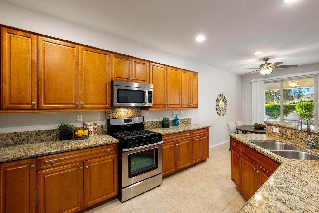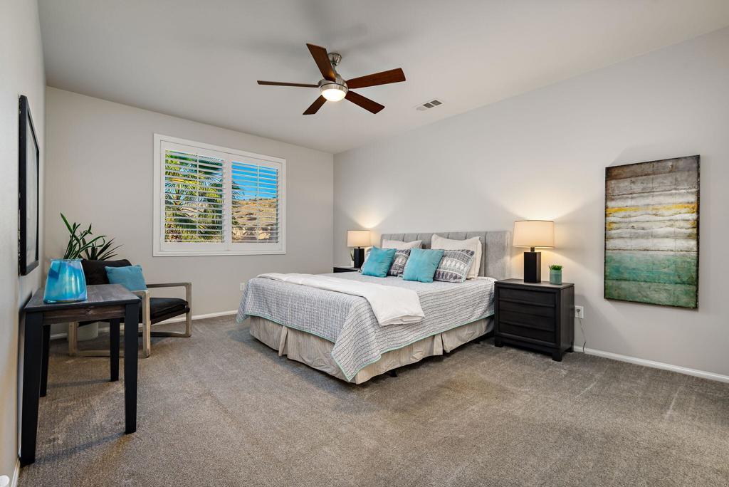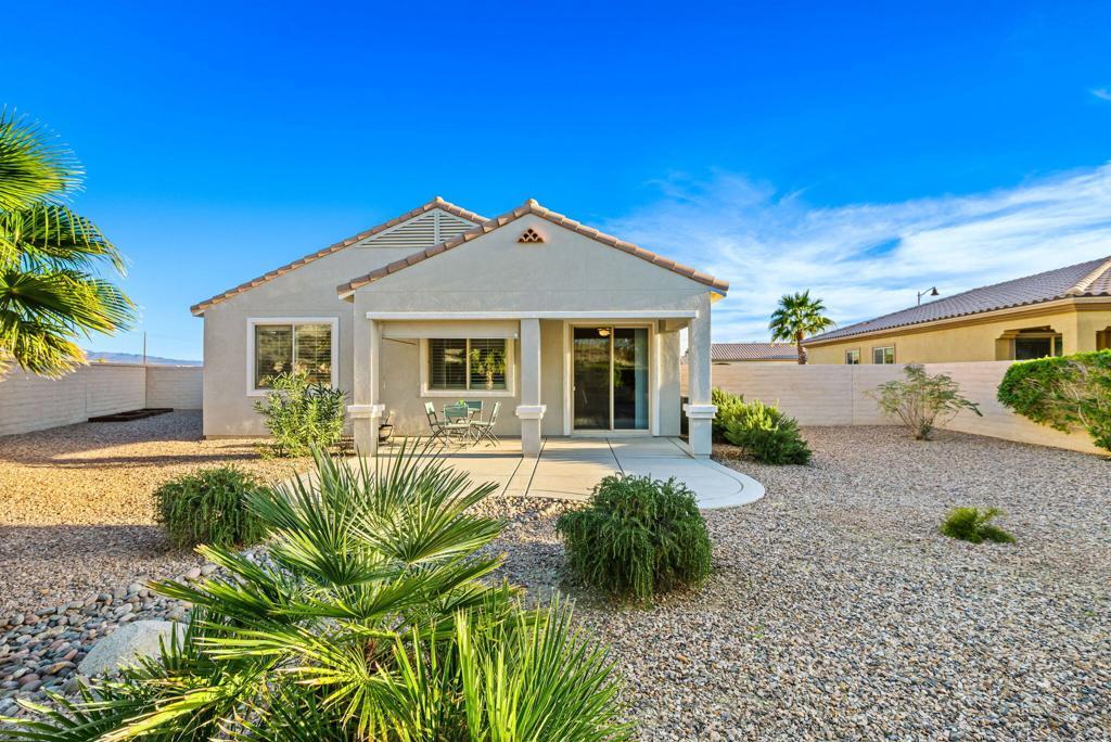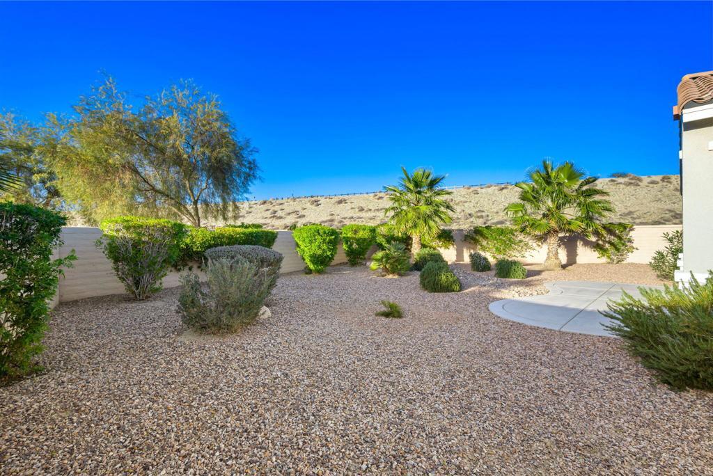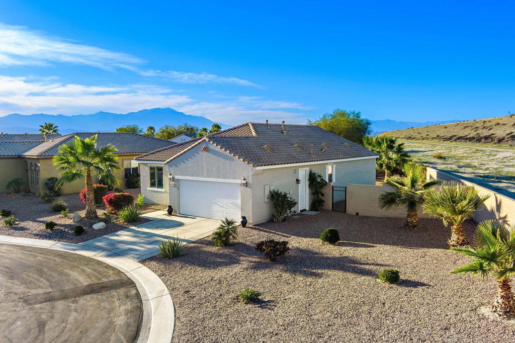 Discover refined desert living in the guard-gated, 55+ active adult golf community of Sun City Shadow Hills in Indio, just minutes from Palm Springs. Located at the end of a CUL-DE-SAC, this IMPECCABLY MAINTAINED Cordoba floor plan sits on a premium OVERSIZED LOT with a preferred NORTH/SOUTH ORIENTATION, offering EXCEPTIONAL PRIVACY and a peaceful desert setting. RECENTLY PAINTED INSIDE AND OUT, the home presents a fresh, move-in-ready feel from the moment you arrive. Inside, extended tile flooring in the great room and hall--with recently cleaned tile and grout--creates a cohesive, stylish look that's also easy to maintain. Ceiling fans in the great room and bedrooms provide year-round comfort, while WOOD SHUTTERS in select windows add timeless character. The thoughtfully designed layout is enhanced by a CUSTOM-ORGANIZED PRIMARY CLOSET, delivering excellent storage and everyday functionality. Natural light fills the living spaces, giving the home an open and inviting feel. The spacious backyard, with no homes directly behind, offers ample room to relax or entertain, and the rear patio is enhanced with TWO NEW ROLL-DOWN SUN SHADES, extending your outdoor living season and providing added comfort and shade. The home is beautifully staged, with a furniture package available outside of escrow through the staging company for a seamless move-in option if desired. Residents of Sun City Shadow Hills enjoy access to championship golf, multiple clubhouses, resort-style pools, fitness centers, pickleball and tennis courts, and a vibrant social calendar--delivering the ultimate active adult lifestyle in the Coachella Valley.