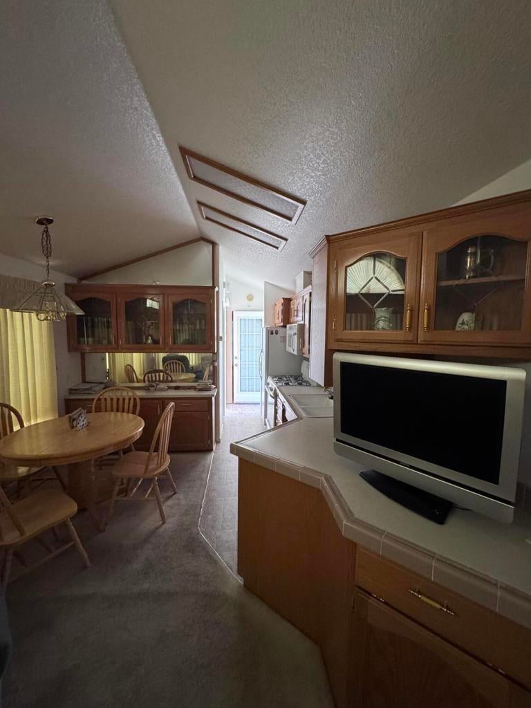 Located in the beautiful Desert Aire resort. Desert Aire is an over 55, pet free, 9 month park. Desert Aire does not permit full time residency. This park is primarily used by snow birds looking to spend the winters in our warmer climate.WOW, check out this 2002 Hallmark park model with views of the mountains and one of the many water features located through out the park. With over 10,000 dollars in landscaping in artificial turf and several mature fruit trees that produce an abundance of different varieties of fruit, there is no outside maintenance.There is a large wrap around patio with a large patio cover that runs along the side of the park model. You will enjoy lots of sun in the mornings on the back patio and plenty of shade in the late afternoon.The interior features vaulted ceilings and large windows creating a bright and airy feel. There are ceiling fans in the living room and bedroom. The kitchen is open and offers plenty of storage and includes a dishwasher. The bathroom has tall ceilings and a walk in shower which is a desirable feature in these park models. The bedroom is open and spacious with more tall ceilings and plenty of storage.All interior and exterior furnishings are included making this move in ready.