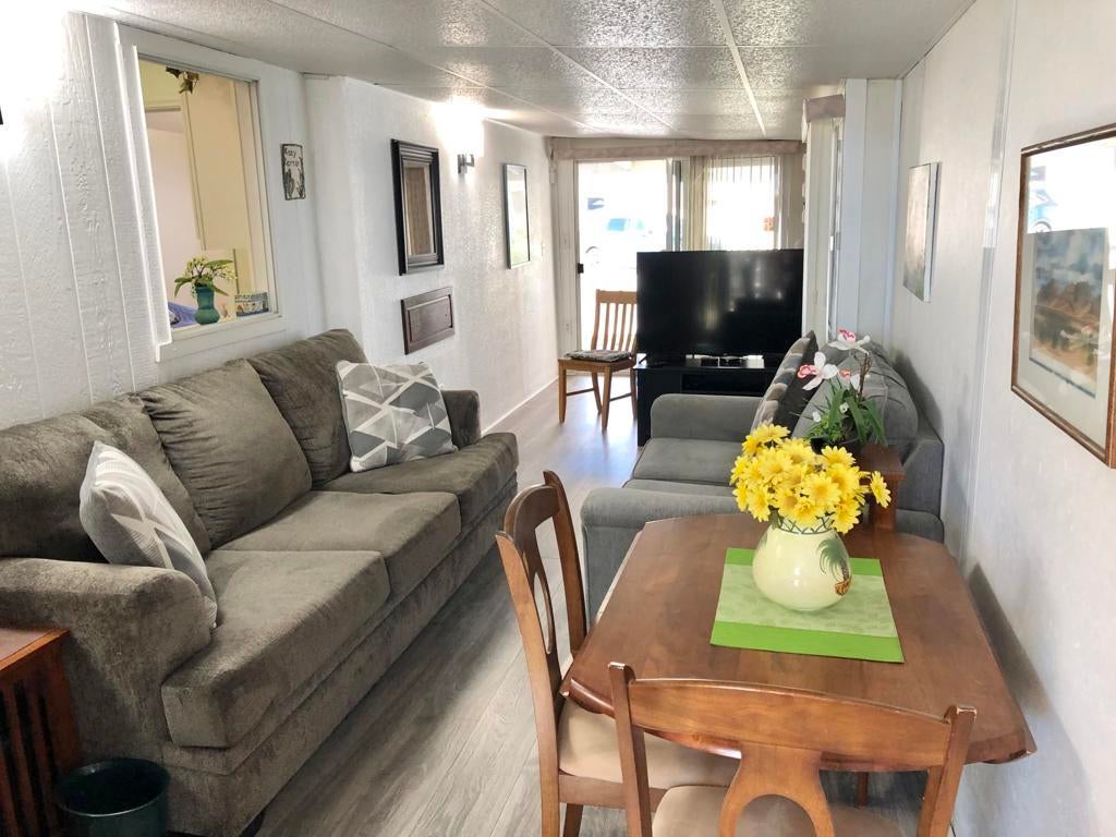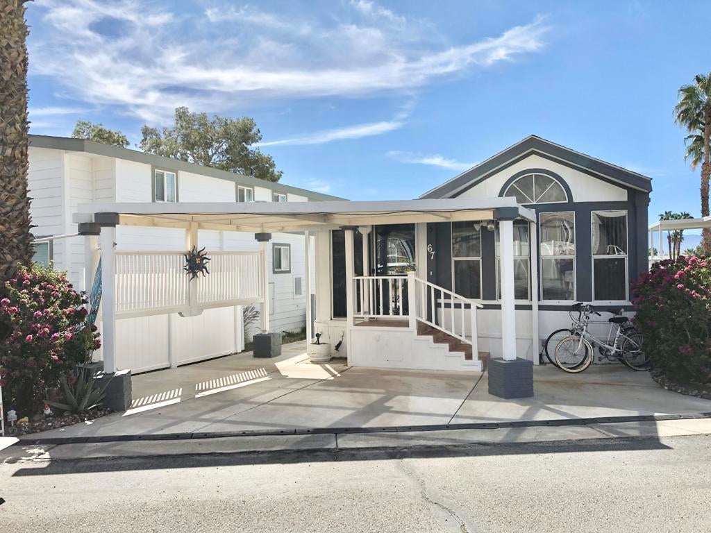 OUTDOOR LIVING with sunset VIEWS over the pond!Rare, 2 bedroom with multipurpose California room, wheelchair ramp, upper covered deck, lower paved patio, shed and covered parking. This is a home perfect for entertaining!ALL AGED active community of Sky Valley Resort has 13 sparkling hot spring mineral pools, pickleball, fitness center, exercise classes, walking trails, cafe, a chef who delivers dinners, activities, events and more!