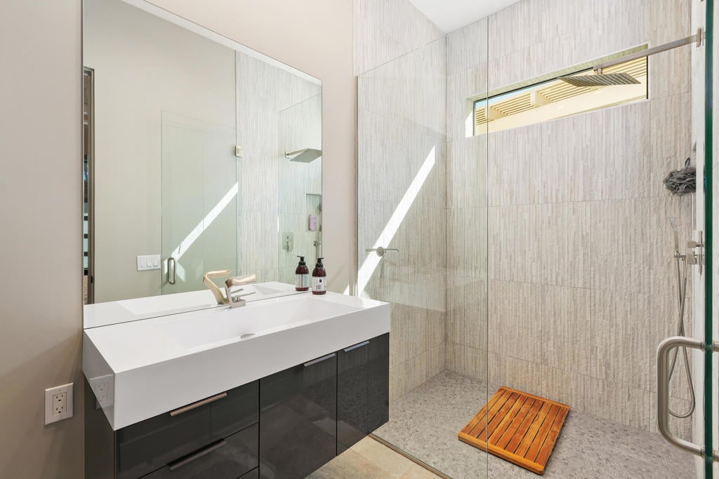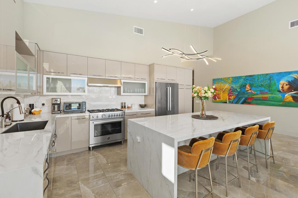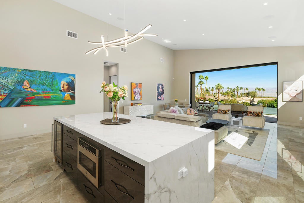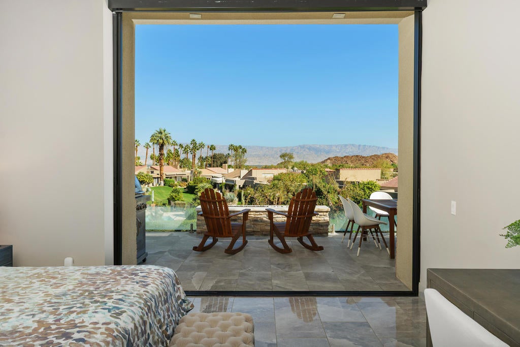 Experience true desert living in this exquisitely renovated condo with elevated mountain views and the serene setting of Ironwood Country Club. This residence offers three spacious bedrooms, three full bathrooms, and a separate powder room, creating an ideal balance of comfort. The heart of the home features a stunning chef's kitchen appointed with Bertazzoni Italian appliances, sleek cabinetry, and refined finishes perfect for entertaining or everyday living. Soaring raised ceilings throughout enhance the sense of openness and natural light, while thoughtful layout design ensures excellent separation of bedrooms, offering privacy for guests. Additional highlights include seamless indoor-outdoor living that fully embraces the surrounding landscape. This home delivers luxury, tranquility, and timeless design in one of South Palm Desert's most sought after communities.