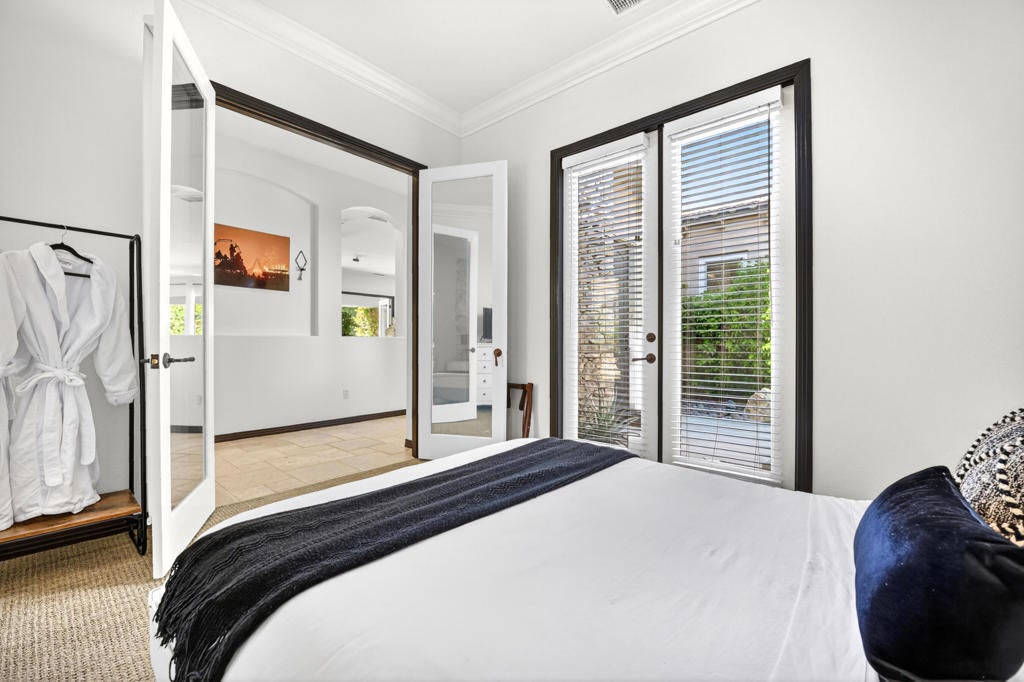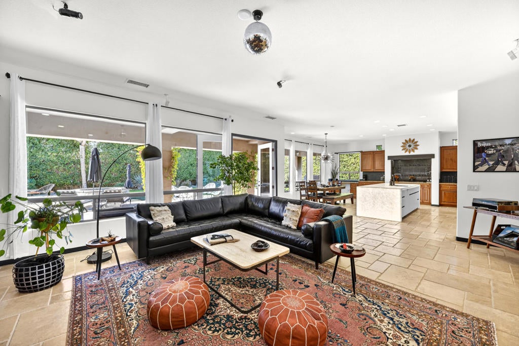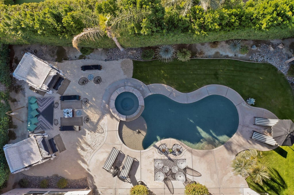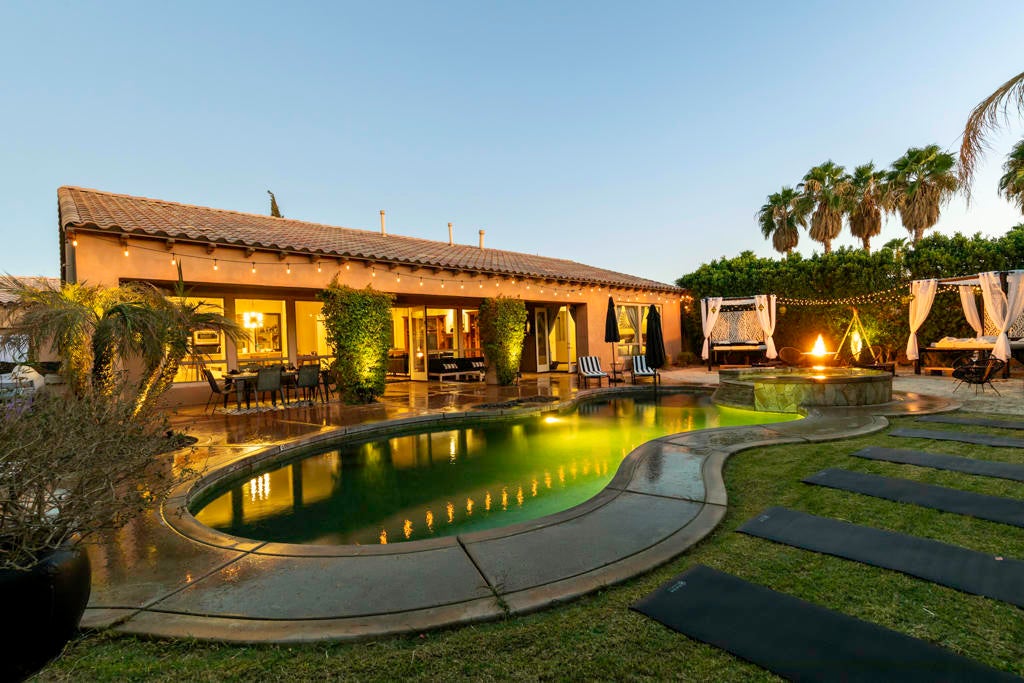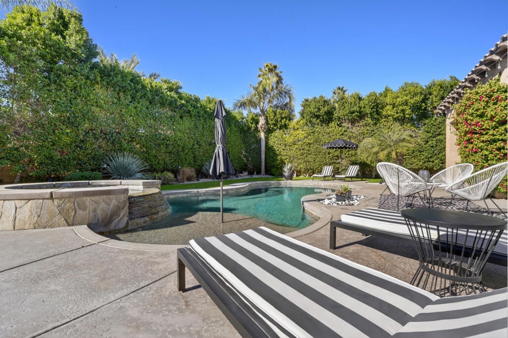 Welcome to Montage at Santa Rosa, a STR friendly development, where refined desert living meets resort-style comfort! This expansive 5-bedroom, 3.5-bath residence offers 3,308 square feet of thoughtfully designed living space, perfectly situated on an impressive 16,117 square foot lot and offered turnkey furnished--ideal for effortless personal enjoyment or immediate rental use. Designed for both everyday living and grand-scale entertaining, the open-concept layout features light-filled living spaces, soaring ceilings, and seamless indoor-outdoor flow. The chef's kitchen anchors the home with a large marble LED island with white wood cabinets and Thermador panel dishwasher, generous cabinetry, and ample prep space--perfect for hosting gatherings or accommodating guests. Step outside to a private backyard retreat reminiscent of a boutique resort. The beautifully landscaped grounds showcase a sparkling pool and spa, multiple lounge and entertaining areas, and ample space to relax under the desert sky--creating a true vacation-style experience year-round. With five well-appointed bedrooms, the home offers exceptional flexibility for guests, multi-generational living, or work-from-home needs. Located close to world-class golf, dining, shopping, and festival venues, this property is exceptionally well-suited as a primary residence, luxury vacation home, or income-producing short-term rental investment. Additional updates include a pool heater and motor replaced in April 2025, HVAC units replaced in July 2025, the interior of the house, garage door and trim painted in August 2024. Space, style, and STR flexibility--this is desert living at its best.