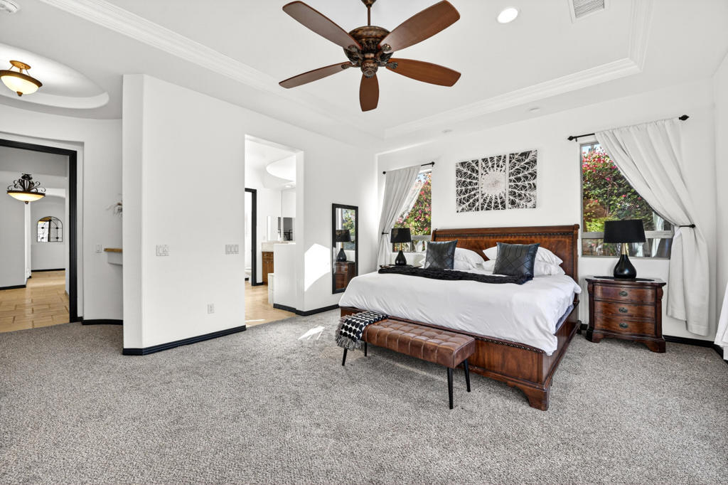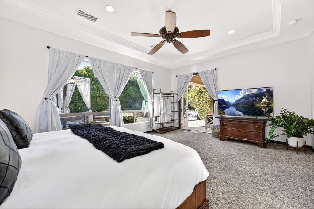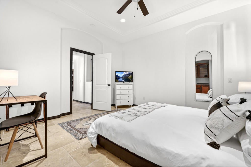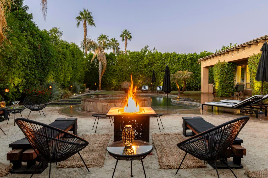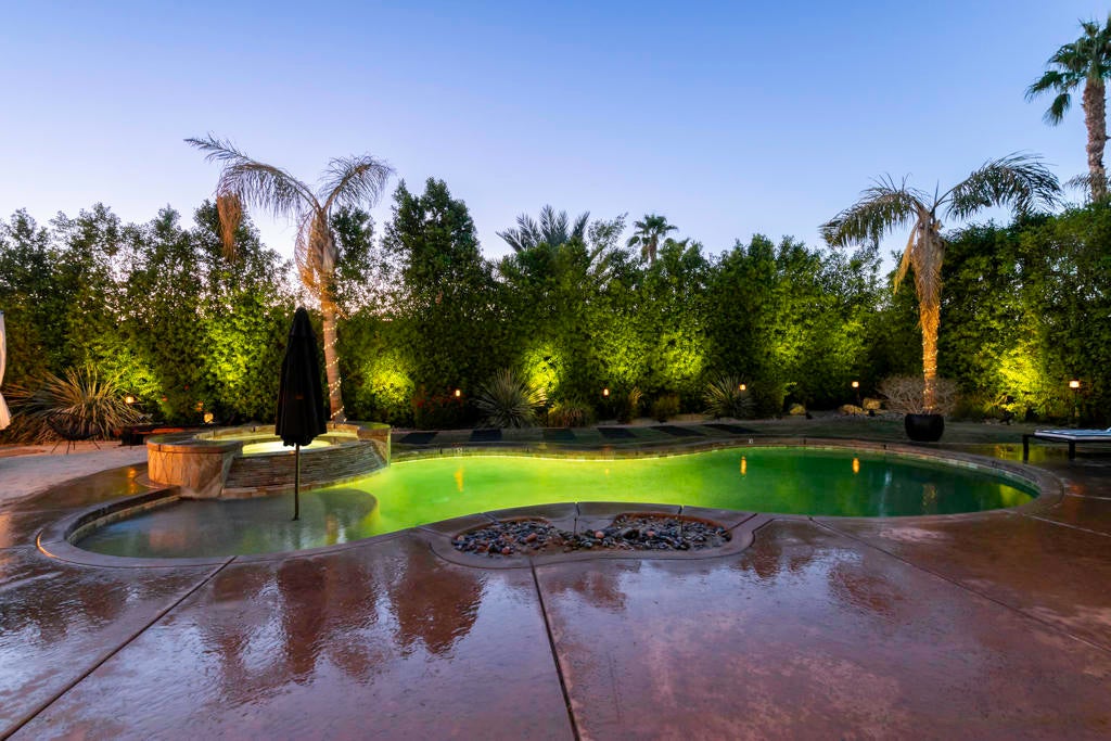 Welcome to Montage at Santa Rosa, a STR friendly development, where refined desert living meets resort-style comfort! This expansive 5-bedroom, 3.5-bath residence offers 3,308 square feet of thoughtfully designed living space, perfectly situated on an impressive 16,117 square foot lot and offered turnkey furnished--ideal for effortless personal enjoyment or immediate rental use. Designed for both everyday living and grand-scale entertaining, the open-concept layout features light-filled living spaces, soaring ceilings, and seamless indoor-outdoor flow. The chef's kitchen anchors the home with a large marble LED island with white wood cabinets and Thermador panel dishwasher, generous cabinetry, and ample prep space--perfect for hosting gatherings or accommodating guests. Step outside to a private backyard retreat reminiscent of a boutique resort. The beautifully landscaped grounds showcase a sparkling pool and spa, multiple lounge and entertaining areas, and ample space to relax under the desert sky--creating a true vacation-style experience year-round. With five well-appointed bedrooms, the home offers exceptional flexibility for guests, multi-generational living, or work-from-home needs. Located close to world-class golf, dining, shopping, and festival venues, this property is exceptionally well-suited as a primary residence, luxury vacation home, or income-producing short-term rental investment. Additional updates include a pool heater and motor replaced in April 2025, HVAC units replaced in July 2025, the interior of the house, garage door and trim painted in August 2024. Space, style, and STR flexibility--this is desert living at its best.