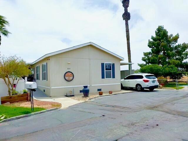 Just REDUCED lowest price ! Seller will carry with 100k down, low interest 7 year max term, I also have a great manufacture home lender with 5% down. Newer Manufactured Home built in 2005. This is a 4 bedroom 2 bath home with a nice side yard, one of a kind in a great location with mountain views from your kitchen window and carport. Privately located at the end of a small culdesac, inside Riverdale Estates 55+ gated community in Indio. Community clubhouse, pool, spa. Must be park approved. Space rent $725.00 base rent. Call for a showing appointment today!