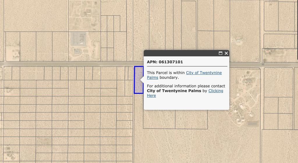 2.5 acre parcel in 29 Palms, on the south side of Hwy 62. An easy drive to either 29 Palms or Joshua Tree and onward to Yucca Valley.