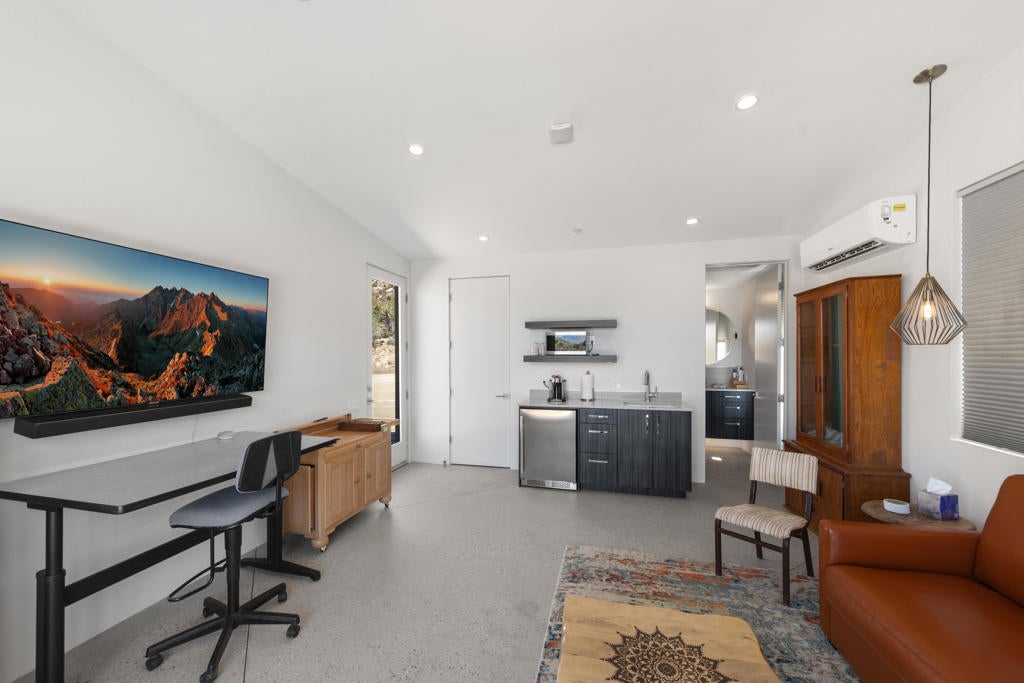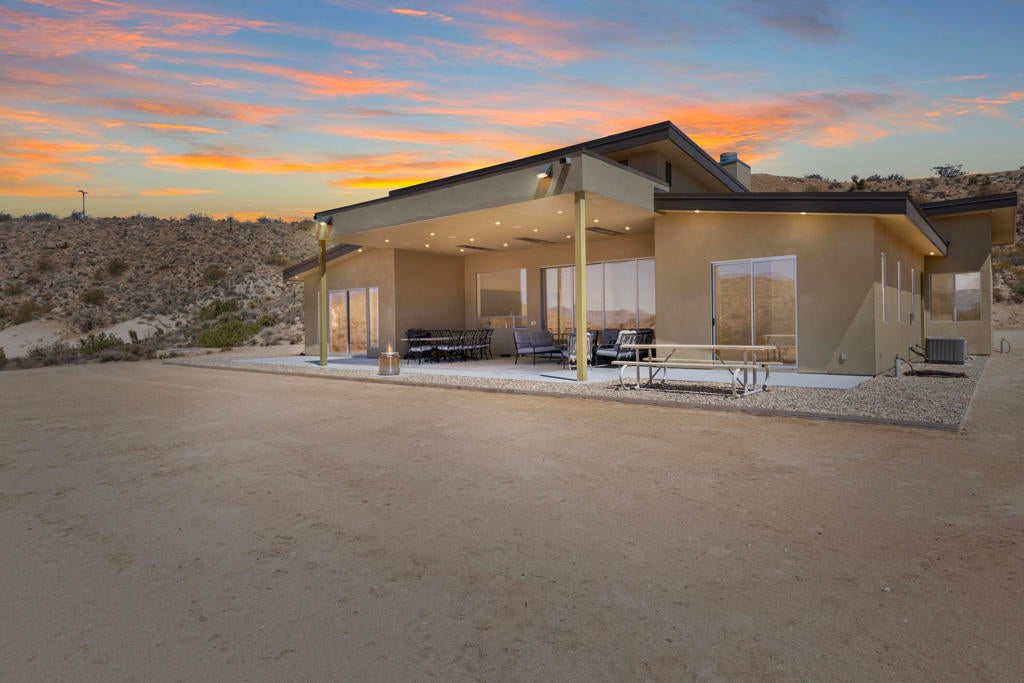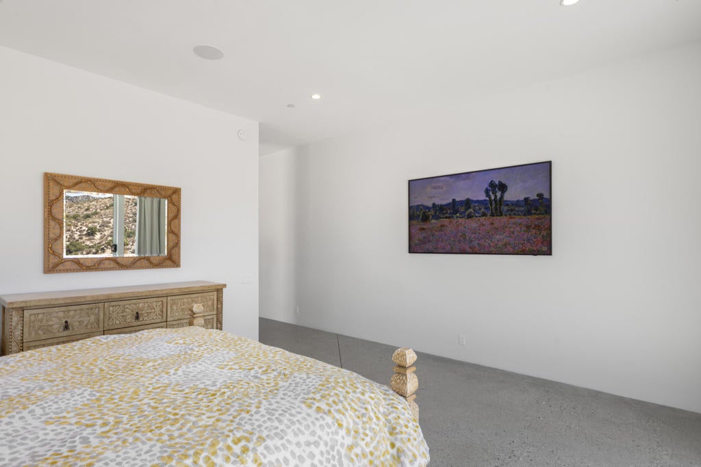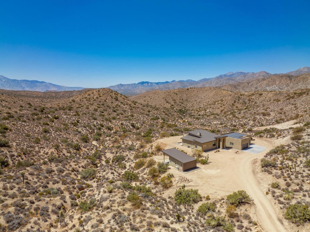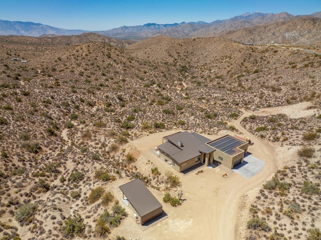 ** See this listing in person on the Reach Out Morongo Basin Parade of Homes Sunday February 15th 11 am-4:00! or before that on Friday the 13th!!This 52-acre 2022 custom-built Estate may showcase the most superior 180-degree views that the Joshua Tree, Yucca Valley JT National park area has ever seen! Located close to the Joshua Tree National Park Black Rock entrance you will enter through a private security gate onto a 1000ft driveway that takes you down to this ultimate privacy and unrivaled views incredible custom home and property! This custom-built solar home was designed to keep these one of kind views in your line of sight from just about everywhere in the main house and detached art/ guest house. The back of this home is open to these views as far as you can see, and you will own all that land in front of you with no neighbors making the privacy truly magical and rare.When you enter the main home, you will be greeted by 12-foot ceilings, and exposed concrete aggregate sealed floors.Gourmet kitchen features luxury subzero &kitchen aid appliances and island and separate coffee bar to mention a few upgrades! Thirsty? Walk into to the 756-bottle refrigerated wine room. Enjoy that glass of wine with glass pocket doors open and hidden to the fresh air and patio for entertaining, this fully owned solar smart home also has a detached art studio/guest house and the 4-car garage is over 1200 sq ft! The possibilities are endless here on 54 acres with walking trails room for a pool, horses, a yoga or large events venue?? Owners recently hosted a 150ppl wedding! Vacation rental income could be sky high. Hurry on this one! Ask listing broker about the 29 adjoining additional acres available in a separate sale ($150k) where you can have 81 acres of total privacy!