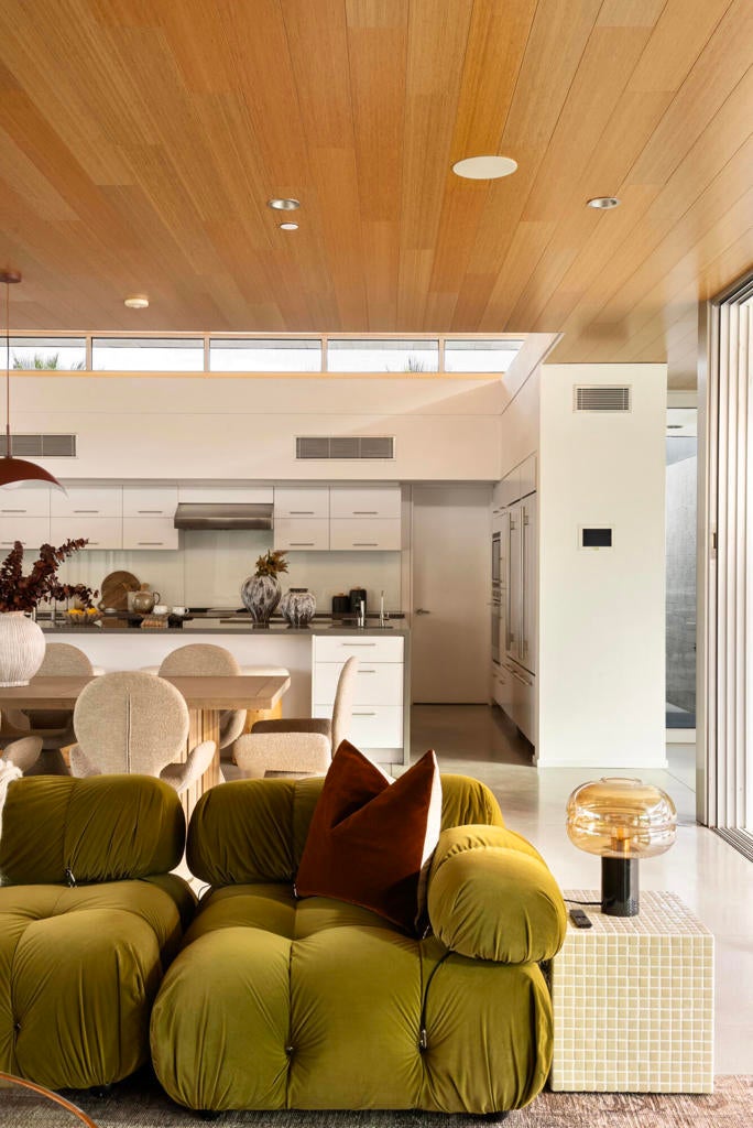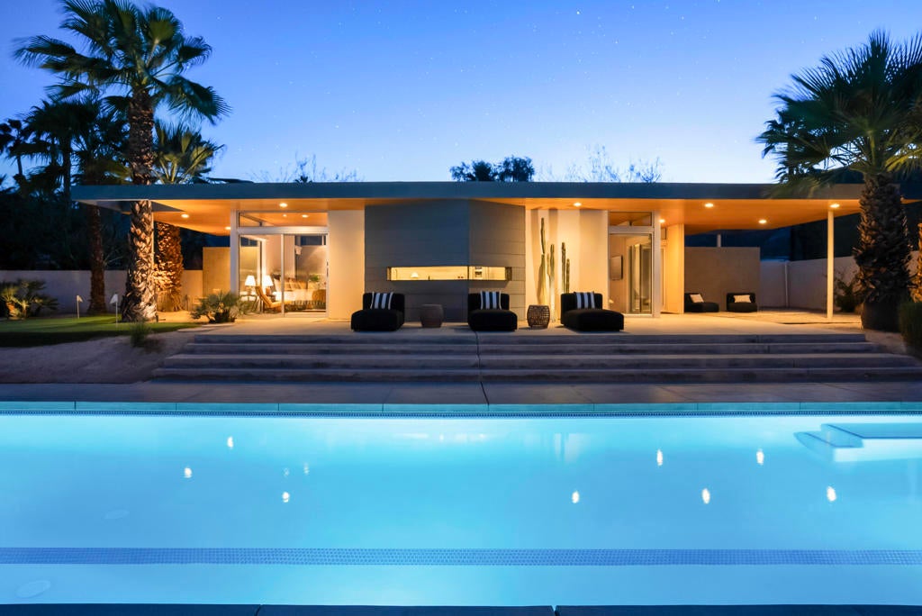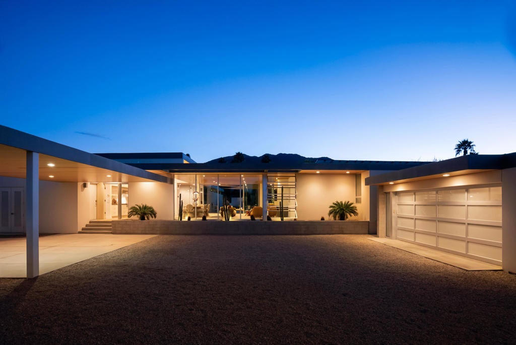 Designed by Lance O'Donnell, AIA, of O2 Architecture, this architecturally significant residence is a refined modern desert compound set against the mountains of Rancho Mirage. Featured across multiple architectural and design publications, the home carries a quiet pedigree expressed through thoughtful scale, light, and proportion.Spanning approximately 5,119 square feet on a generous 0.7-acre lot, the estate is composed of three separate structures, creating a private, compound-like setting ideal for hosting, multigenerational living, or guests who value independence and privacy. The flexible layout offers seven bedrooms and seven bathrooms, allowing the home to adapt effortlessly to both everyday living and large-scale entertaining.Architectural details define the experience throughout. A striking floating ceiling introduces a sense of volume and lightness, while walls of glass and intentional orientation invite abundant natural light, blurring the line between indoors and out. The result is an atmosphere that feels open, calm, and deeply connected to its desert surroundings.Resort-level amenities elevate the lifestyle, including a 25m lap pool designed for both fitness and leisure, additional pools framed by new decking, and outdoor living spaces enhanced by misters for warm desert days. Indoors, a state-of-the-art private theater room offers a cinematic retreat, complemented by a whole-home sound system and a comprehensive home security system for comfort and peace of mind. A dedicated sauna completes the experience, adding a restorative layer to this desert sanctuary.Set within a highly desirable enclave of Rancho Mirage, the property enjoys proximity to world-class dining, golf, and entertainment, while maintaining the tranquility of a mountainside desert oasis, offering a rare balance of seclusion, views, and architectural presence.