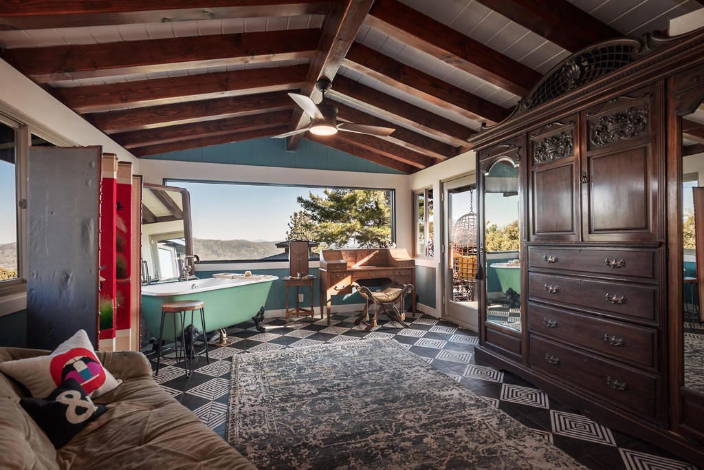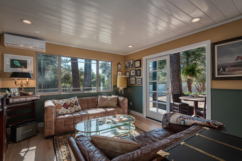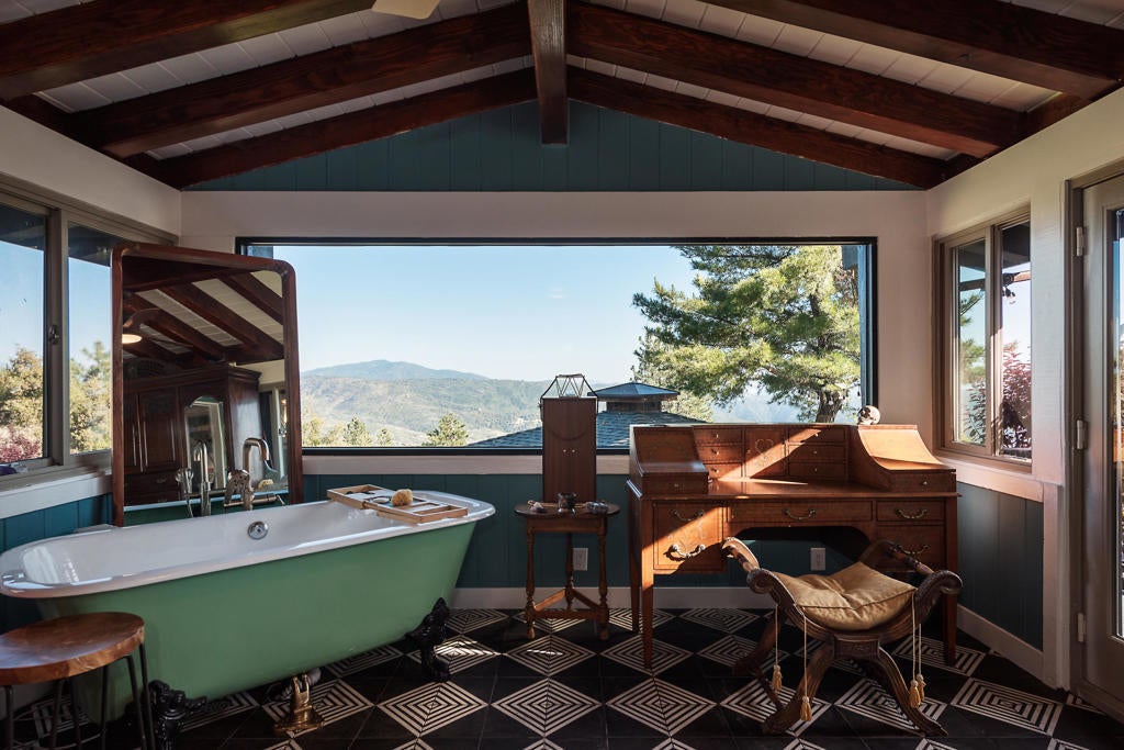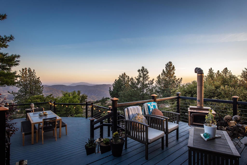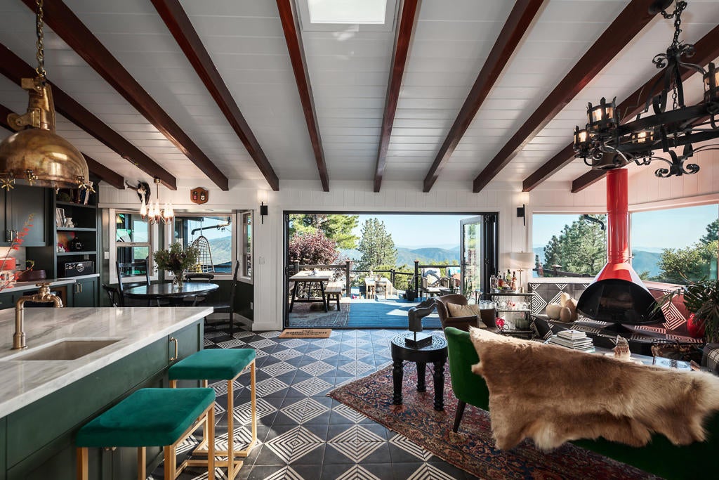 With an extensive remodel, captivating views, generous space and a genuine mountain-meets-city vibe, this eclectic residence makes it easy to experience the ultimate Idyllwild lifestyle. Located on a private hillside site of nearly .45 acres, the private yet welcoming home offers multiple terraces, decks and patios. Both levels and nearly every room of the 2-story, 3-bedroom, 3-bath design open to the outdoors, with a main level hosting a great room with fold-away glass doors to the deck, and a new kitchen with stone countertops, stainless steel appliances, an oversized island with prep and farmhouse sinks, custom cabinetry, and a nook with bay window. The main-level primary suite frames magnificent views and features a sitting room with claw-foot tub, a walk-in closet and chic bath. Downstairs, indoor entertaining reaches new heights with a billiards room, kitchen, office and a pub-style wet bar. Furniture purchased for $100,000 included in sale.