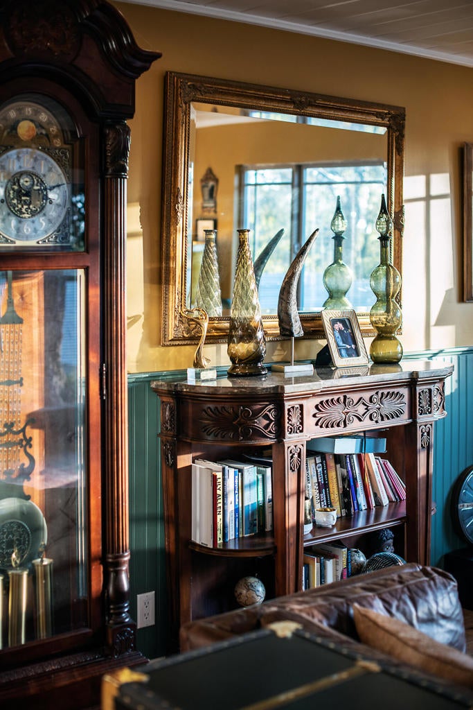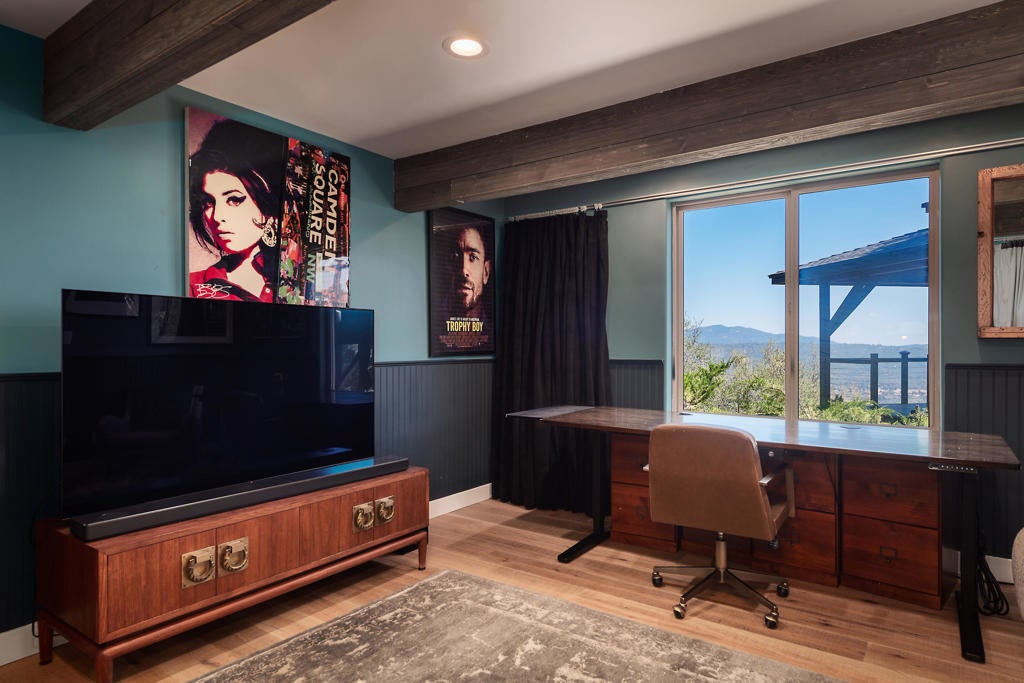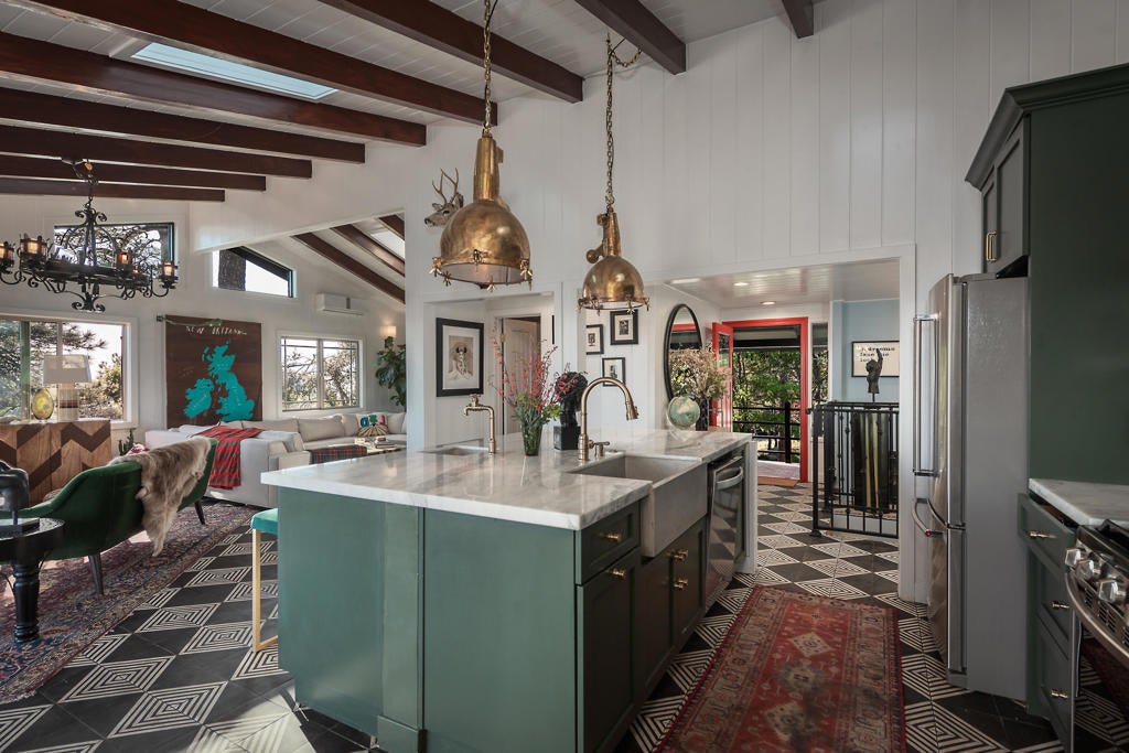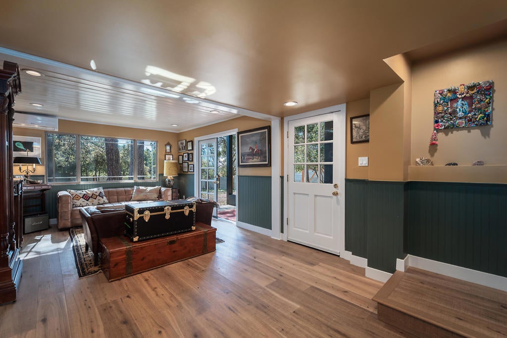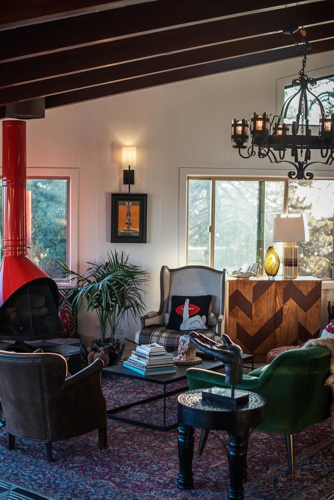 With an extensive remodel, captivating views, generous space and a genuine mountain-meets-city vibe, this eclectic residence makes it easy to experience the ultimate Idyllwild lifestyle. Located on a private hillside site of nearly .45 acres, the private yet welcoming home offers multiple terraces, decks and patios. Both levels and nearly every room of the 2-story, 3-bedroom, 3-bath design open to the outdoors, with a main level hosting a great room with fold-away glass doors to the deck, and a new kitchen with stone countertops, stainless steel appliances, an oversized island with prep and farmhouse sinks, custom cabinetry, and a nook with bay window. The main-level primary suite frames magnificent views and features a sitting room with claw-foot tub, a walk-in closet and chic bath. Downstairs, indoor entertaining reaches new heights with a billiards room, kitchen, office and a pub-style wet bar. Furniture purchased for $100,000 included in sale.