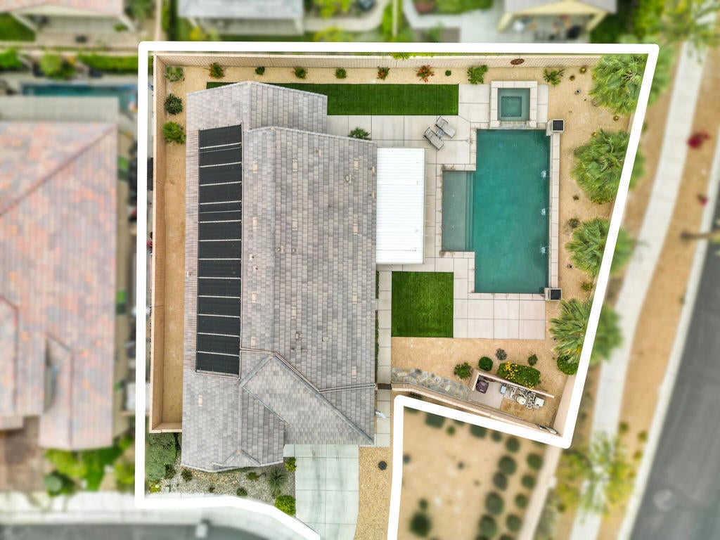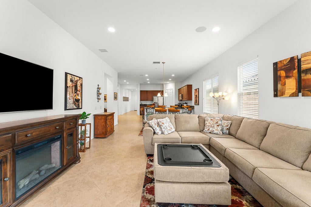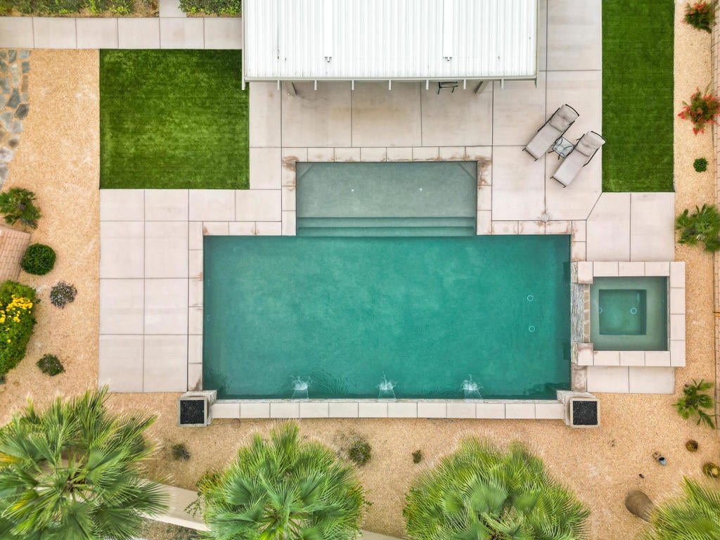 Welcome to resort living in the sought-after Four Seasons at Terra Lago in Indio. This stunning 2-bedroom, 2-bathroom home offers approximately 2,100 sq. ft. of thoughtfully designed living space, perfectly blending comfort, elegance, and indoor-outdoor living.In addition to the two bedrooms, the home features a spacious den that can easily be converted into a third bedroom by adding a closet. Generously sized, this versatile space is ideal as a guest bedroom, home office, or office, offering plenty of room to suit your lifestyle needs.Step into an incredible, completely reimagined backyard--an entertainer's dream. Enjoy a custom pool and spa, featuring a hot tub that overflows into the pool, accented by beautiful water fountains that create a tranquil, luxury resort ambiance. The expansive backyard offers ample space to relax, entertain, or unwind, all enhanced by built-in outdoor speakers, perfect for enjoying music while hosting guests or relaxing under the desert sky.The home also features a deep garage with ample length, providing enough space to comfortably park a large truck while still allowing room for storage.Inside, the home is open, bright, and inviting, making it ideal for both full-time living and seasonal enjoyment. Located within a premier guard-gated community, residents of Four Seasons Terra Lago enjoy world-class amenities including a clubhouse, fitness center, pools, social activities, and more.This is desert living at its finest--privacy, luxury, flexibility, and lifestyle all in one exceptional property.