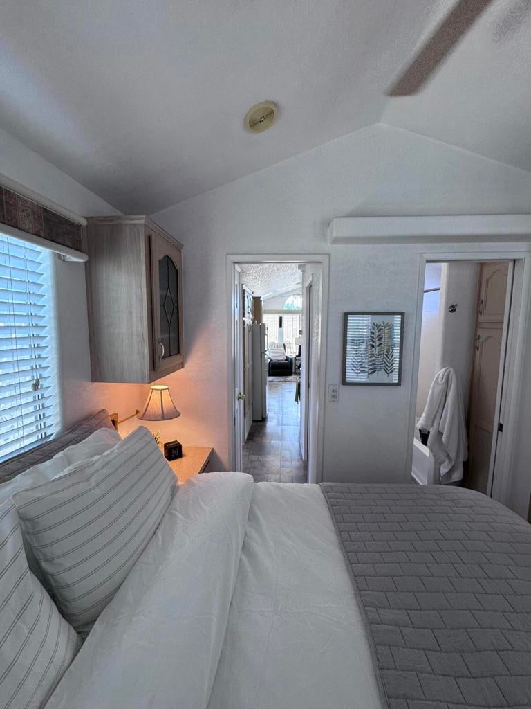 Located in the beautiful Desert Aire resort. Desert Aire is an over 55, pet free, 9 month park. Desert Aire does not permit full time residency. This park is primarily used by snow birds looking to spend the winters in our warmer climate.WOW...Check this one out!!!This is a well appointed 1992 park model that is turnkey and ready to use or rent.( Seller will even throw in a 1998 Toyota Camry!! )This park model offers a great location with beautiful views of one of the many water features in the park. This park model faces north and the back patio faces south. The park model has high ceilings and provides lots of natural light. All of the furnishings, kitchen ware, bath ware and bedding are included. There is lots of storage in the kitchen with cabinets that have pull out shelves for easy access to pots and pans and pantry items. There is an additional storage closet in the hallway leading to the bedroom. The bath room features two entry and exit doors for additional privacy.The large storage shed features a washer & dryer and also includes patio furniture, BBQ, outdoor heater and