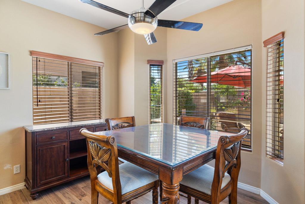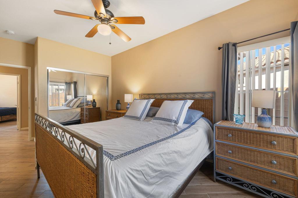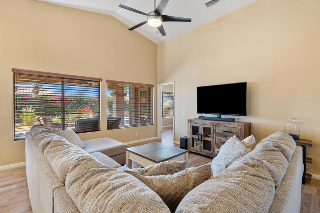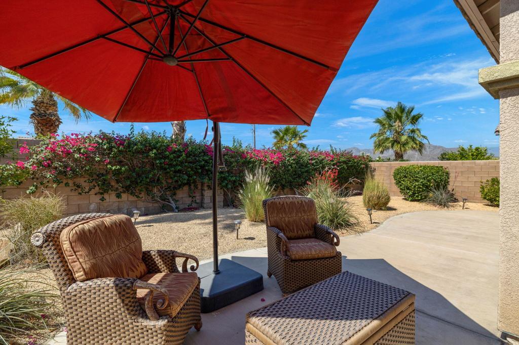 Fully turnkey furnished rental available March 1. $4500/mo monthly or annual lease at $3200/mo. The perfect size house inside the gates of the beautiful Indian Springs CC. This 3 bedroom and 2 bathroom Newport model with wood like tile flooring throughout (1 king, 2 queens) 2 bathrooms and a great room feel with living, dining, and kitchen all connected. The backyard has southern sun exposure and views of the Santa Rosa mountains. Zoned for all three of the DSUSD schools (LQHS, John Glenn, Amelia Earhart) that are within walking distance for the kiddos. This clean and bright 1500sqft property includes stainless steel kitchen appliances and washer and dryer in the laundry room with utility sink. Some pets may be acceptable with landlord approval. Indian Springs CC is a guard gated community that offers a fitness center with jacuzzi and lap pool. Included with the rent is Frontier High-Speed Internet and DirecTV with HBO & Showtime.