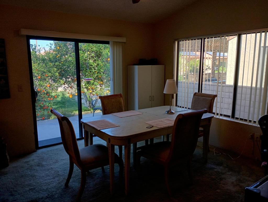 Welcome home to this inviting 3-bedroom, 2-bath residence offering 1,363 square feet of comfortable living space in the desirable, gated community of Golden Sun Estates. The thoughtfully designed layout features a spacious living area, a functional kitchen, and well-sized bedrooms--perfect for everyday living or relaxing desert escapes.The home includes a 2-car garage for convenient parking and extra storage, along with mature fruit trees and peaceful greenbelt views that enhance the outdoor setting. Ready for your personal touch, this property is a fantastic opportunity to customize and make it your own.Golden Sun Estates is an all-ages community known for its active lifestyle and excellent amenities, including two swimming pools and spas, tennis and pickleball courts, a basketball court, and a clubhouse ideal for gatherings or private events. With a low HOA of just $180/month, you'll enjoy resort-style living without the high cost.Ideally located just off Washington Street with easy access to the I-10 freeway, the home is close to shopping, dining, entertainment, and schools. Whether you're searching for a full-time residence, a seasonal desert retreat, or an income-producing investment, this Palm Desert gem checks all the boxes.Priced to sell--schedule your showing today before it's gone.