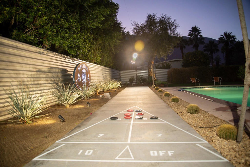 Available starting 4/1/2026. Welcome to this stunning mid-century modern oasis nestled within the sought-after Tahquitz River Estates community in Palm Springs. This spacious 4-bedroom, 2-bathroom home is a true epitome of timeless design fused with contemporary upgrades. Upon entry, you'll be greeted by newly tiled floors that lead into the great room. Tall canted ceilings and expansive sliding glass patio doors transform the great room into a perfect gathering place, allowing an abundance of natural light to fill the space.The dining area is thoughtfully positioned between the great room and kitchen, creating an ideal layout for entertaining. Patio doors in the dining area further enhance the indoor-outdoor flow, providing seamless access to the inviting pool and deck areas.The open-concept kitchen adjacent to the dining space features a sleek, modern design that is as functional as it is beautiful. Equipped with built-in stainless steel appliances, this kitchen is ideal for preparing everything from casual poolside bites to full meals, making entertaining effortless.