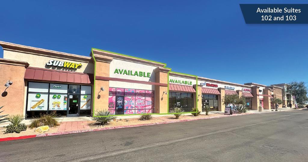 Newer retail center, well maintained and ready to lease. Suite 103-FOR LEASE- 1440 SF suite. Suite 103 was a former Cricket Wireless. Employee area and storage with small office and private restroom.Great signage available (on monument and building). Ample parking and great visibility. Join Dollar Tree, Harbor Freight, Tractor Supply, Stater Bros., Subway, Quick Quack, Verizon and more.