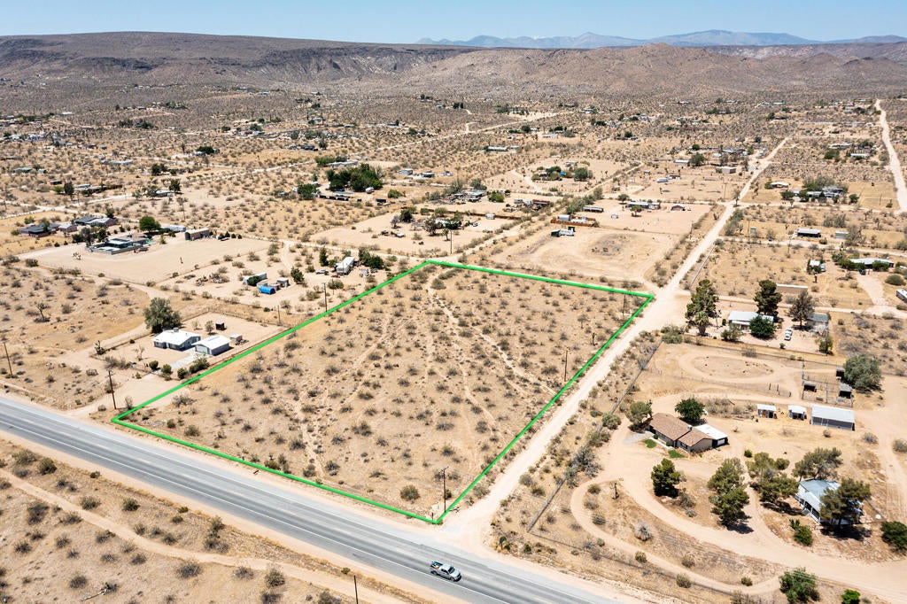 4.71 acres commercial/residential zoned land in trendy Flamingo Heights. Corner property with Hwy visibility. Power and water is right there. Commercial zoning may allow for a hotel, restaurant, strip mall, flea market, art gallery, bar, etc. The sky's the limit. Horse property and close to endless trails in the Sand to Snow Monument. Just down the way from the internationally known La Copine restaurant. Not far from the Giant Rock Meeting Room, Heroes Restaurant and 5 Dollar Pizza. A short drive to Pappy and Harriests world famous music venue. 19 miles to the Joshua Tree National Monument where about 3 million tourists visit annually. 23 miles to Johnson Valley where ''King of the Hammers'' ORV races bring 10s of thousands of spectators. 44 miles to Palm Springs. 130 miles to Los Angeles. Hot vacation area. Buyers must contact the county planners for all questions on building. Buyers must contact all the appropriate utilities agencies with all questions on utilities. GPS: 34.22815, -116.44079. S/E corner of Butte and Old Woman Springs Rd. Don't Wait! - Call Now! APN: 0629-421-07-0000 Address is real go direct. Lot size is approximate, buyer must investigate.