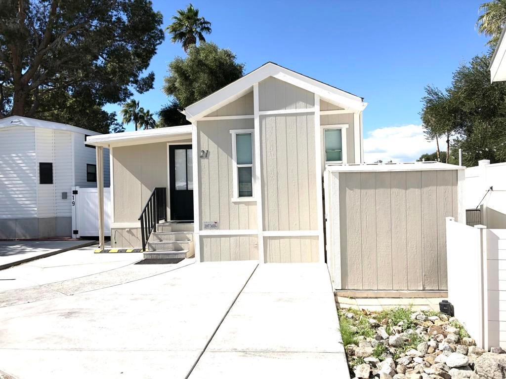 Lovely park model with serene view of the sunset and pond. Active, friendly ducks will keep you entertained all day! Cozy electric fireplace in living room and firepit on composite deck. Beautiful large, outdoor table, seats 6! California room addition has bifold futon for additional overnight guests and stackable washer and dryer. Convenient shed in the driveway.ALL AGED community park of Sky Valley Resort features: 13 sparkling hot spring mineral pools, pickleball courts, tennis, bocce, basketball, shuffleboard, horseshoe pits, fitness centers, walking trails, library, cafe, chef who delivers dinners, in season social clubs, events and so much more!Call for a scheduled showing!