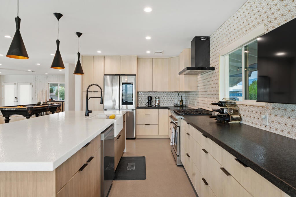 Leased 2/1/26-4/23/26 Check out our remodel! Come see for yourself, a Custom Mid-Century Entertainers Classic, gated golf course community with private pool, above ground hot tub, private gate entry. Stunning 4 bedroom 3.5 bath, with a Game room! Perched on a hill with amazing views of golf course, & mountains, close proximity to EVERYTHING, Polo grounds, Tennis, shopping, restaurants, easy freeway access. Enjoy the very private backyard with awesome views of the #2 Green on Classic 3! Even has an RV/Tesla Charger Hook ups in the garage!