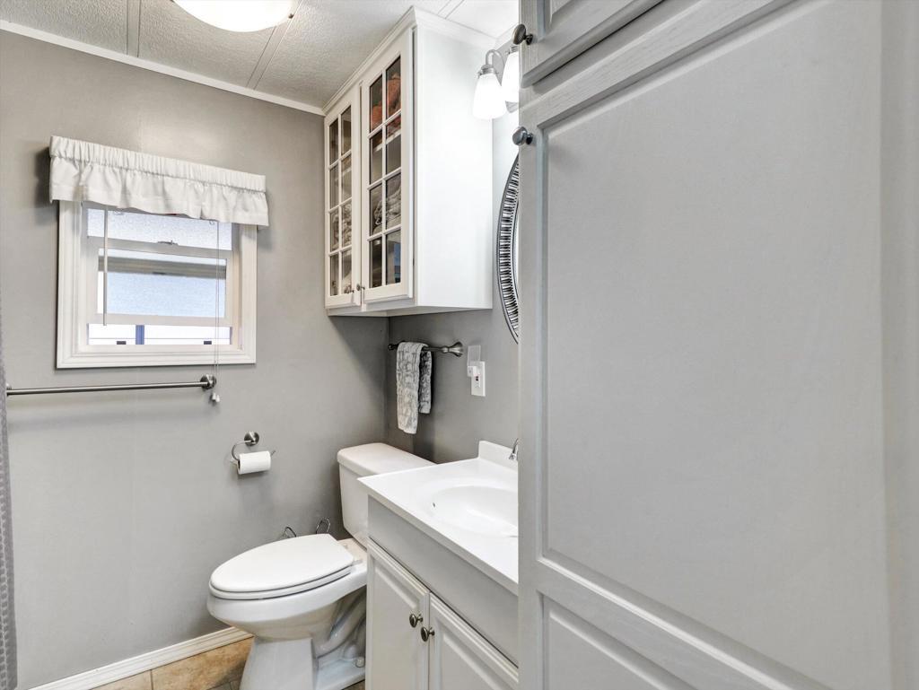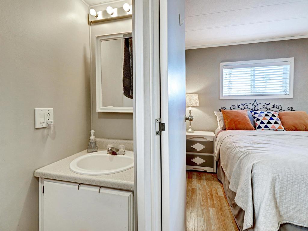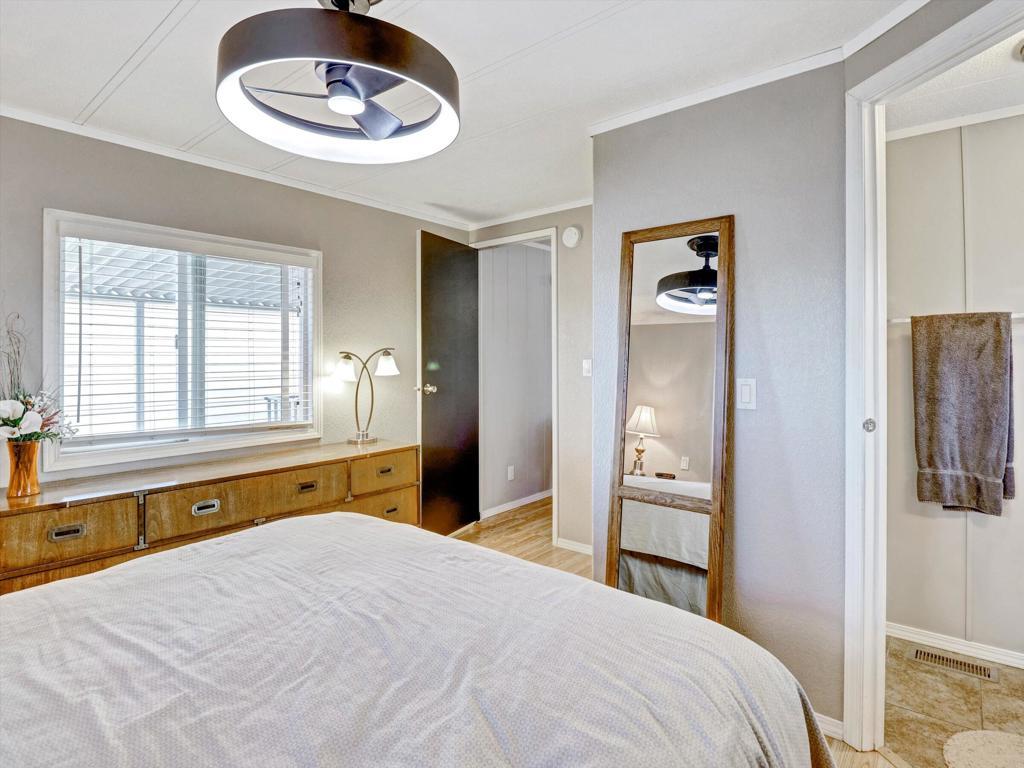 Welcome to 3 Hoover in Tramview Mobile Park, a move-in ready home that comes turn-key furnished. Comfort, upgrades, and exceptional value in an amazing central location. Close to dining, shopping, golf, hiking and the airport. There is nothing not to love about this property. The exterior is designed for effortless desert living. Enjoy a low maintenance patio, a raised and covered deck complete with patio furniture and BBQ included, plus a full driveway for easy parking. The outdoor dining space makes entertaining simple and enjoyable year round.Inside, the spacious two bedroom layout feels open and inviting. The beautiful kitchen offers abundant storage and tile flooring. The bathroom has been thoughtfully updated with designer tile, fresh paint, and the convenience of a separate tub and shower. Tile and laminate flooring throughout add to the clean, cohesive look. Everything you could want including an exterior shed that has every screw, bolt, or anything else you might need! Located in Tramview Mobile Park, a lovely and vibrant community. There is always something to do and the sense of belonging and fun is unmatched. Affordable desert living at its finest.