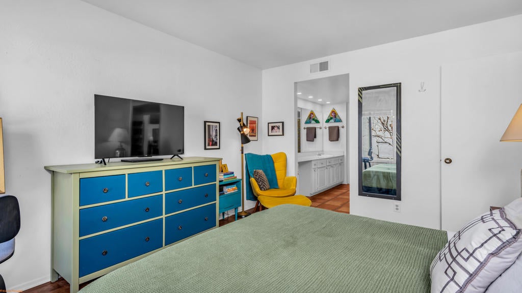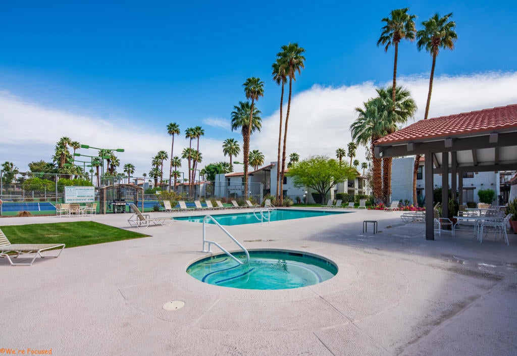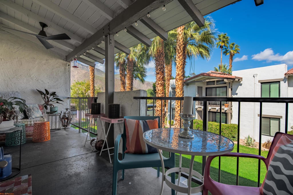* Best value for a 2BR/2BA condo in Palm Springs* Nicely updated 2BR/2BA in a wonderful HOA with great amenities including pool, spa, clubhouse and tennis courts* Grand living room with dramatic vaulted ceiling with ceiling fan* Formal dining area* Updated kitchen with new brass hardware and newer stainless steel appliances including a 5-burner range and hood* Primary bedroom with vaulted ceiling, ceiling fan, walk-in closet and en-suite bath with recently renovated shower with beautiful tile and brass hardware and recessed lighting * Large guest bedroom with walk-in closet * Beautiful tile flooring throughout and brand new hardwood flooring in the bedrooms* Newly painted interior throughout * Direct access from both the living room and primary bedroom through sliding glass doors to a covered private deck with wonderful mountain views* Fantastic central Palm Springs location close to shopping and restaurants