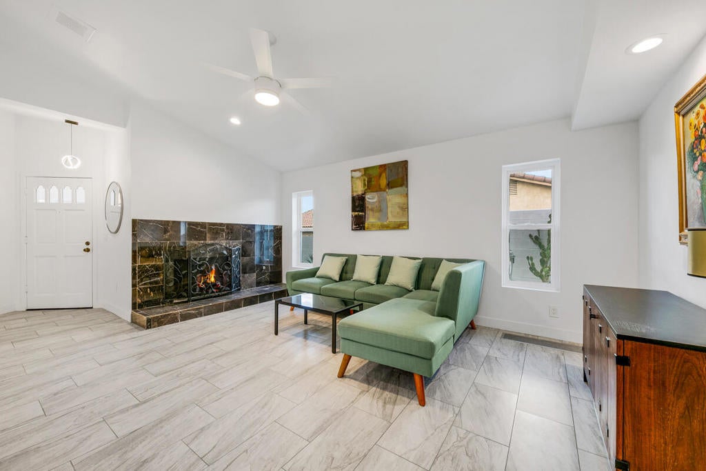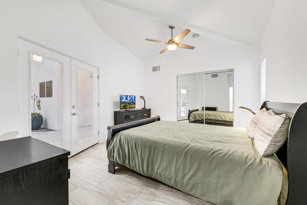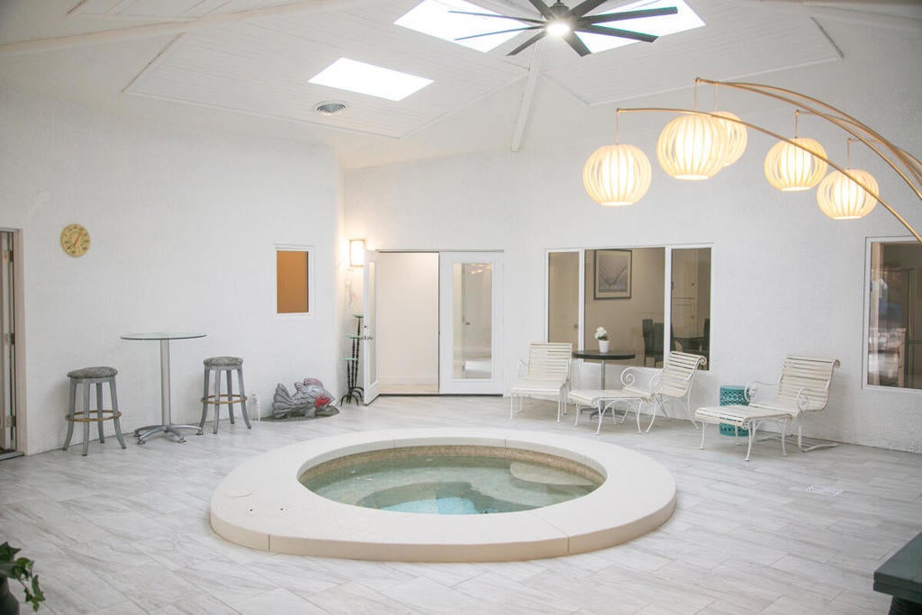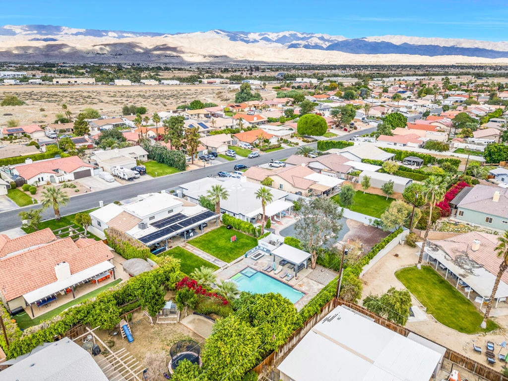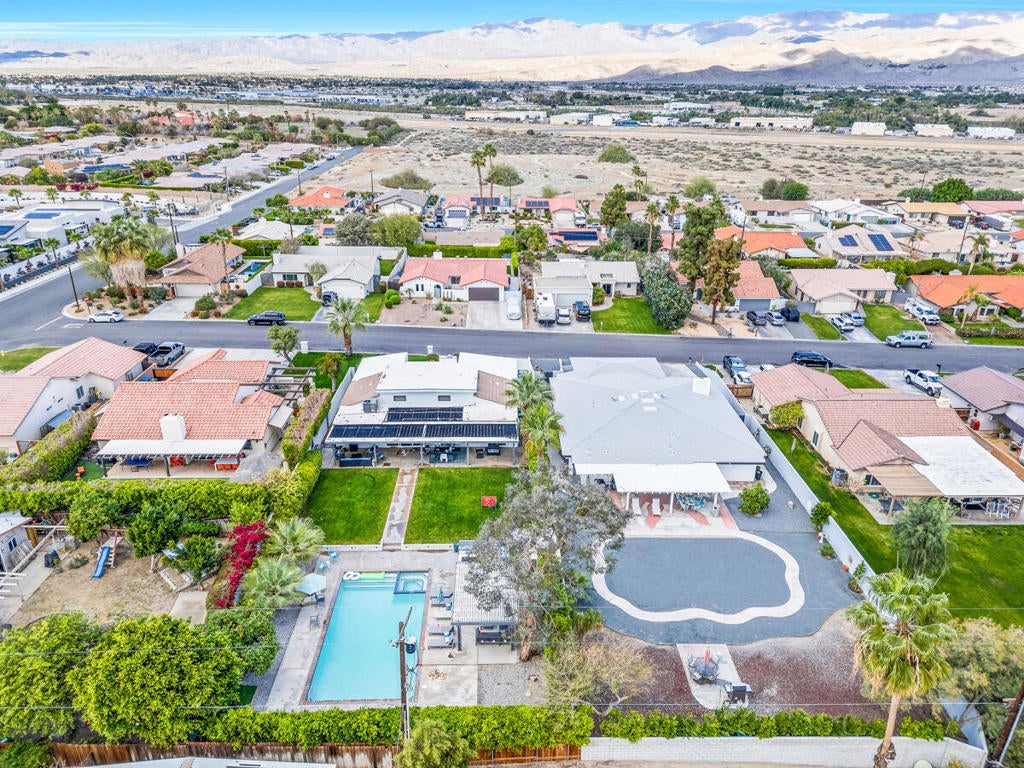 Welcome to this one-of-a-kind 3-bedroom, 3.5-bath custom-built residence, perfectly blending modern luxury with thoughtful design. Every detail of this home has been newly remodeled to offer comfort, style, and functionality--creating the ultimate indoor-outdoor unique desert living experience. NO HOAThe heart of this home is its dramatic interior atrium, featuring a 15-person jacuzzi spa that serves as the focal point for relaxation and entertainment. This indoor-outdoor oasis adds an additional 1,000 sq. ft. of luxurious living space.NEW chef's kitchen with beautiful cabinetry, modern appliances, and sleek finishesNEWly renovated bathrooms with premium fixtures and tile workAll NEW exterior windows for abundant natural light and energy efficiencyNEW tile flooring throughout for a clean, contemporary aestheticSpectacular NEW atrium skylights that brighten and warm the central living areaNEW custom-built side security gates for added privacy and peace of mindThree NEW French doors opening to serene outdoor spacesCommercial-grade large electrical panel for durability and future expansionFreshly painted exterior and interior--move-in ready!Outdoor shower--perfect for cooling off after enjoying the outdoorsLow-maintenance desert landscaping in both front and backyardsSeparate laundry room with ample storage and functionalitySpacious bedrooms including a huge primary suite featuring a walk-in closet that feels like a boutiqueEach bedroom enjoys no shared walls for exceptional privacy and opens directly to the stunning atrium. One of the three bedrooms can easily serve as a private in-law suite with its own entrance.The expansive 13,000 sq. ft. double-long backyard offers endless possibilities--ideal for an ADU, pickleball court, pool or all three! Enjoy the freedom to tailor this space to your lifestyle needs.The finished two-car garage includes a dedicated storage room, perfect for tools, hobbies, or organization.Built to last, this home features 2x6 perimeter construction--providing superior durability, insulation, and longevity. It's a home designed for decades of enjoyment and peace of mind.Every inch of this property showcases quality, creativity, and care. From the luxurious spa atrium to the expansive backyard, this home is a true masterpiece.The neighboring property is also for sale. Add a gate between the two and the options are limitless! *The Third bedroom (den to bedroom) was not permitted, but is to code & 1.5 bathrooms