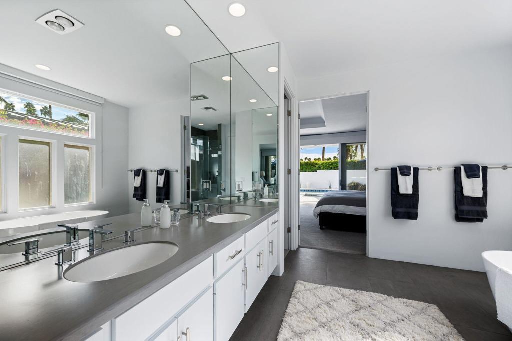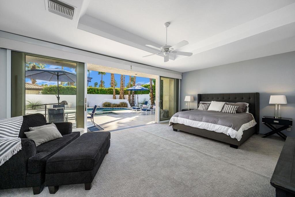 Stunning South-facing Mountain Views highlight this beautifully updated 4-bedroom home, thoughtfully designed and built by renowned developer Philip Manuel. Showcasing quality craftsmanship and timeless design, this exceptional home offers both elegance and comfort in every detail, with upgraded tile flooring and a spacious Living Room featuring a fireplace and multi-slide doors for seamless indoor-outdoor living. The updated Chef's Kitchen features crisp white cabinetry, stainless steel appliances, and a functional layout ideal for both everyday living and entertaining. Updated bathrooms, modern finishes and stylish fixtures. The spacious Primary Suite is a private retreat featuring a spa-inspired bath, walk-in closet, and multi-slide doors that open directly to the Pool and stunning Mountain views. 3 Guest Bedrooms feature en-suite baths providing comfort and privacy and private patios. Step out to the back patio and enjoy beautiful desert evenings by the Pool and Spa surrounded by breathtaking vistas. A 2 car garage plus a dedicated golf cart garage. A rare opportunity to own a meticulously updated home with sought-after southern exposure and spectacular views in prestigious Indian Wells.